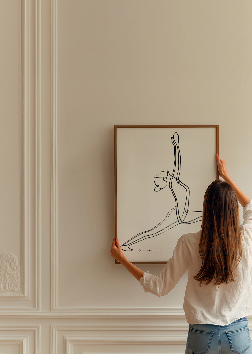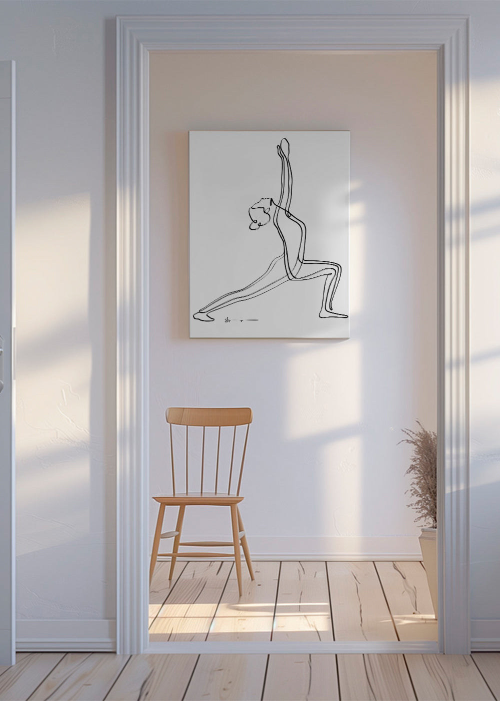 Una opera dal nostro repertorio di quadri con linee, di Yoga in Art, con sfumature dai colori monocromatico, e nel formato verticale. Si tratta di un'illustrazione semplice e pulita, che puoi abbinare ad altre illustrazioni per realizzare una composizione artistica. Lascia che le tue pareti raccontino una storia.