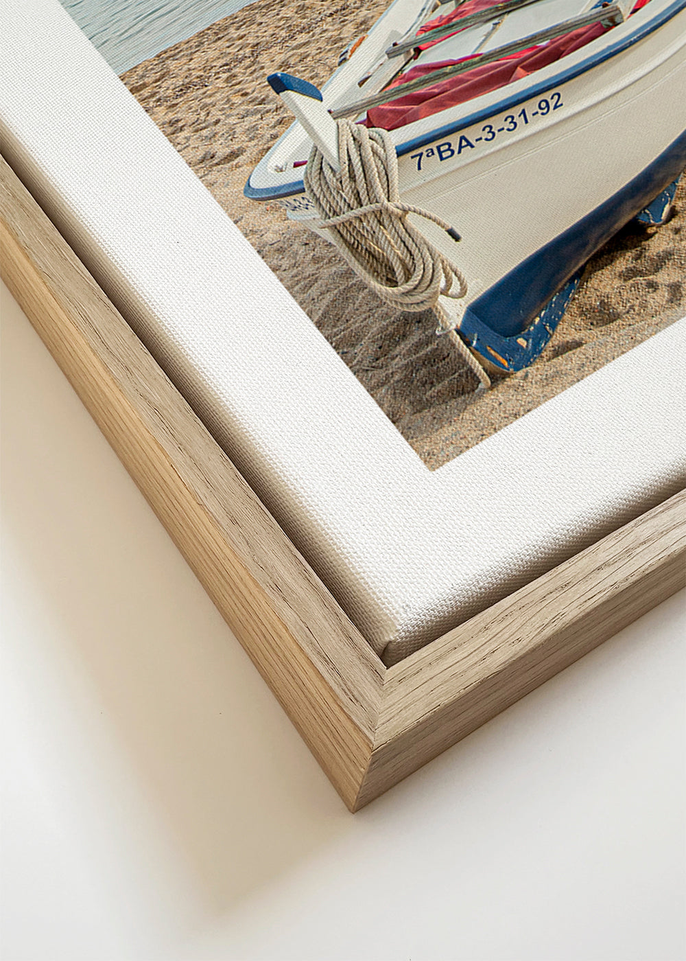 Se selezioni l'opzione passepartout, aggiungeremo la scatola di cartone bianca alla cornice e ridurremo il design dell'opera. Ad esempio, se selezioni un foglio di formato 50x70, con cornice e passepartout color rovere, ridurremo il disegno del foglio al formato precedente (40x50cm). In questo modo si adatterà perfettamente alla finestra interna del passepartout.