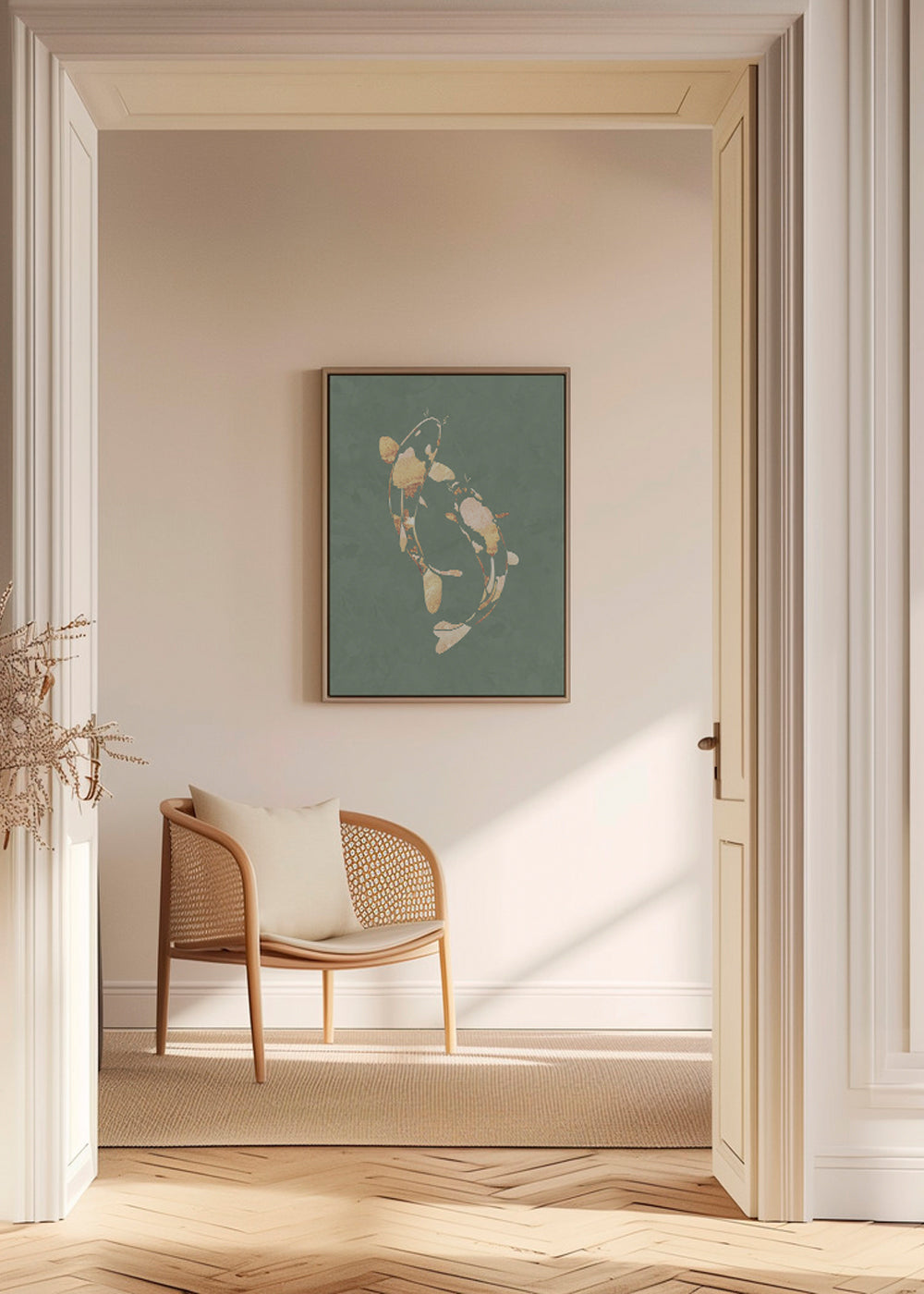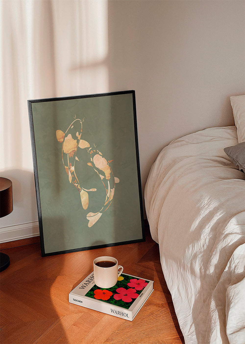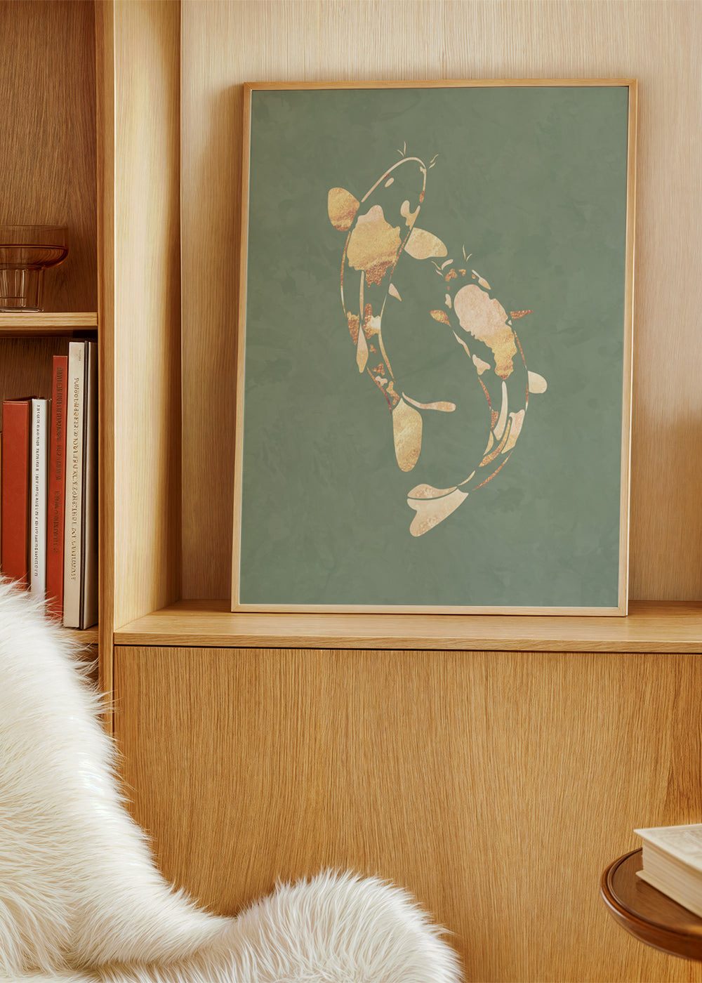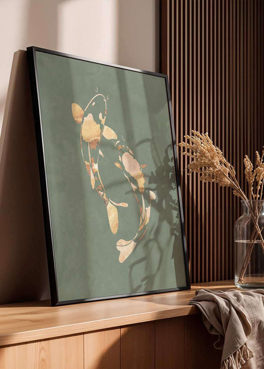 Quadro per la camera da letto Gold Koi Fish sage green 1
