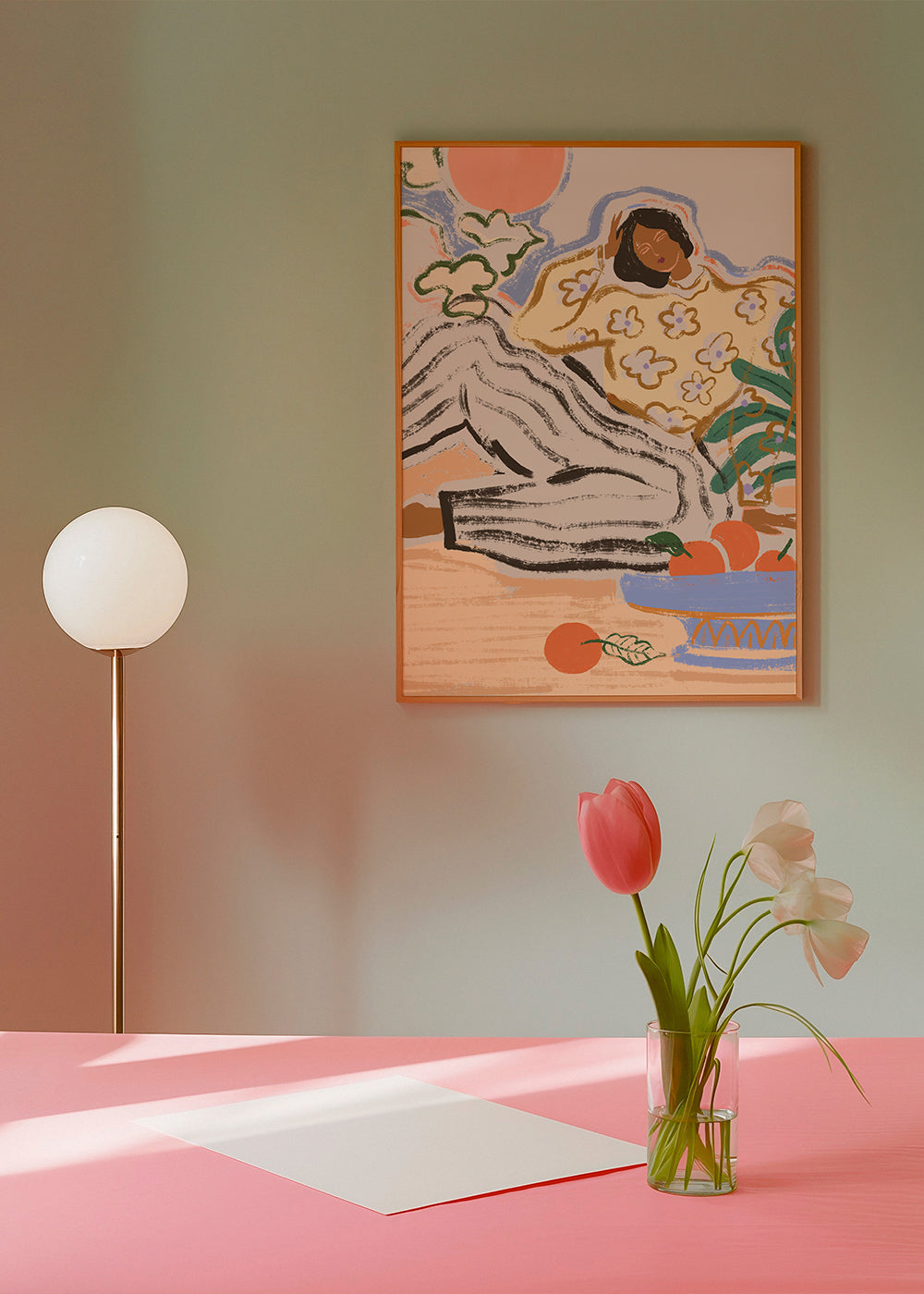 Una stampa della nostra selezione di quadri di donne, dell'artista 1x, con sfumature dai colori multicolore, e ideale da mettere in posizione verticale. Si tratta di un'illustrazione semplice e pulita, che puoi abbinare ad altre illustrazioni per realizzare una composizione artistica. Di' addio alle pareti spoglie e senza carattere.