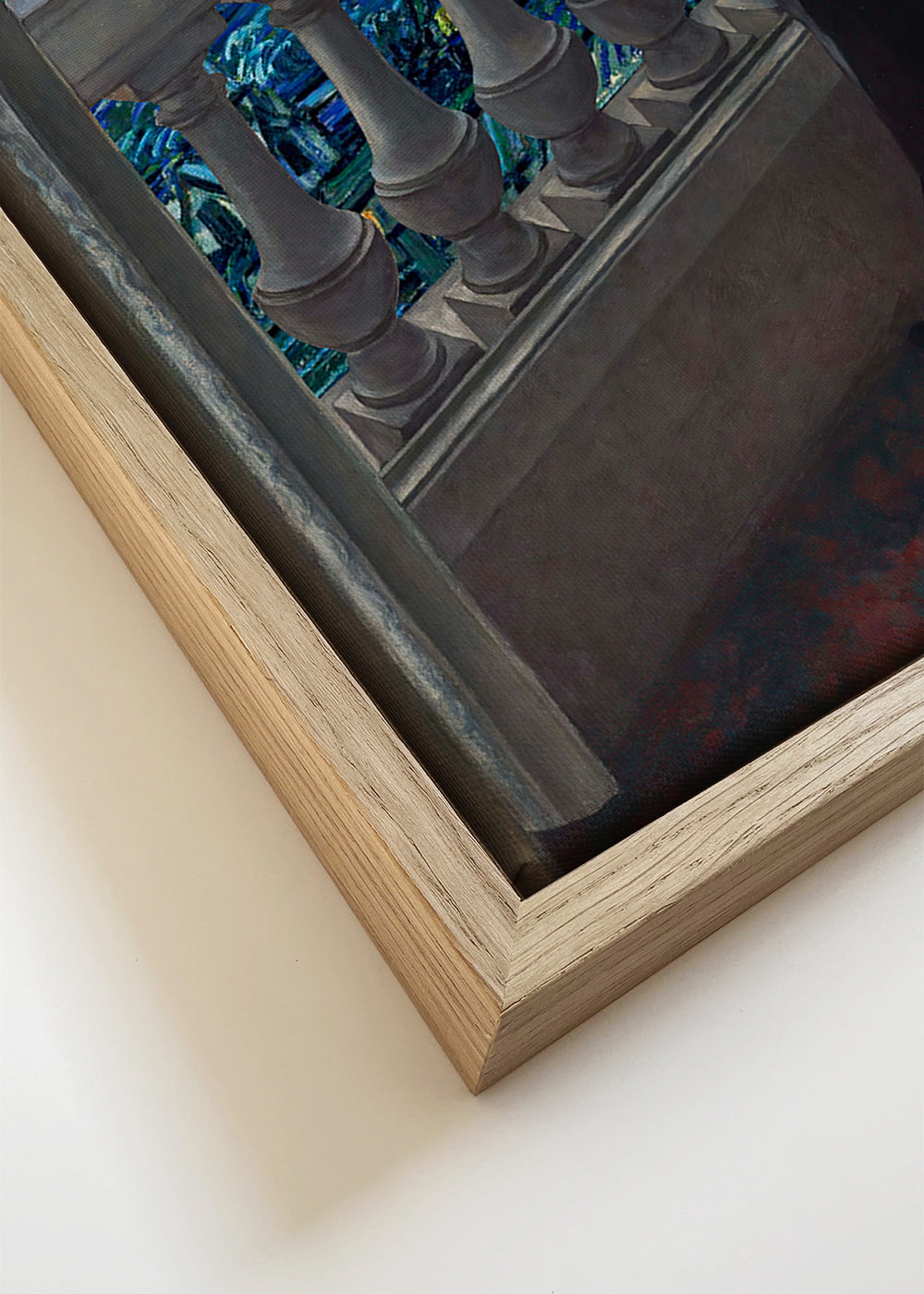 Per evitare rotture, le nostre cornici incorporano vetro acrilico al posto del vetro. Il vetro acrilico riproduce l'effetto del vetro, ma evita possibili danni durante il trasporto o il posizionamento della cornice.
