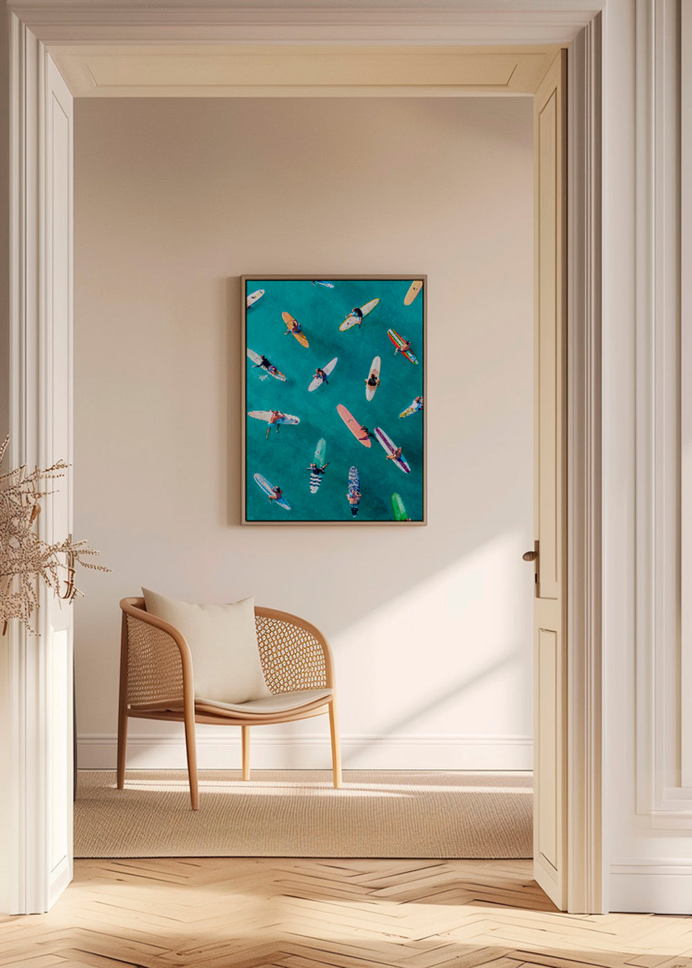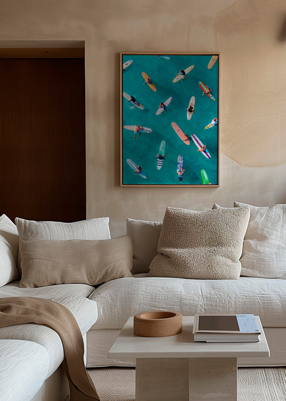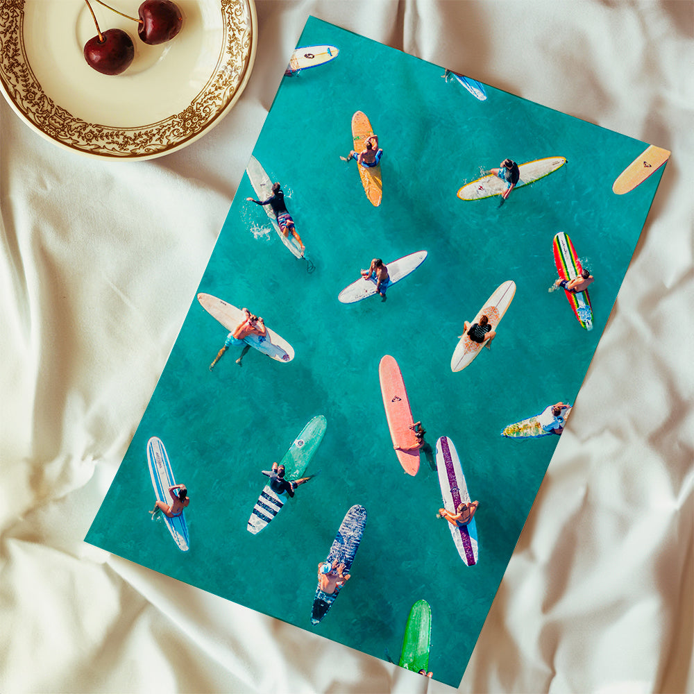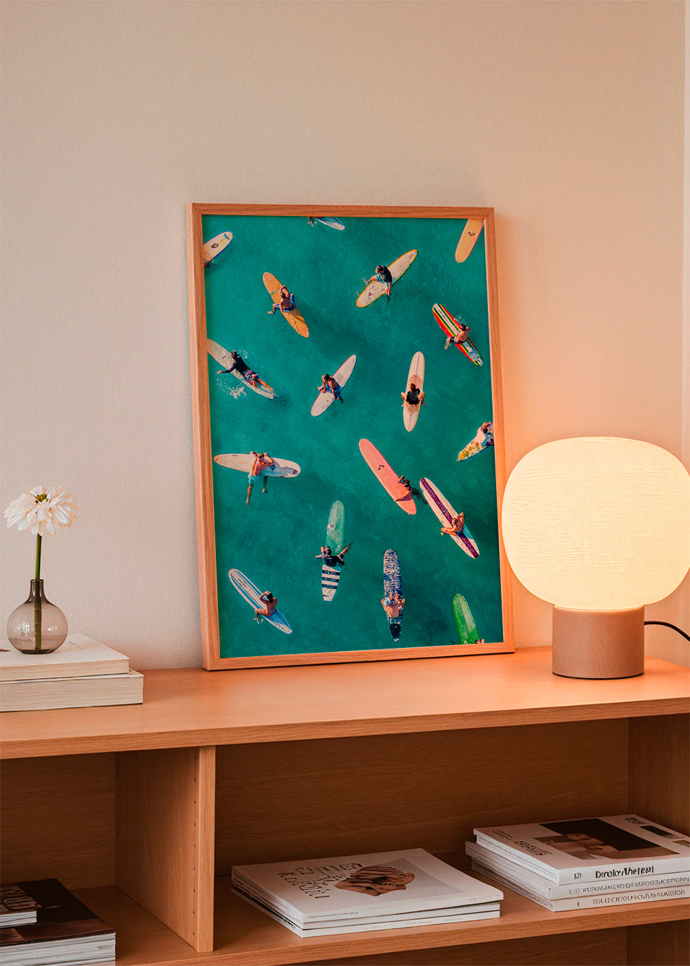 Bello design dal nostro repertorio di quadri di surf, originale di Gal Design, sui toni blu, e con posizione verticale. L'home decor ispirato ai paesaggi dà un tocco di freschezza a qualsiasi spazio. L'equilibrio perfetto tra originalità e design.