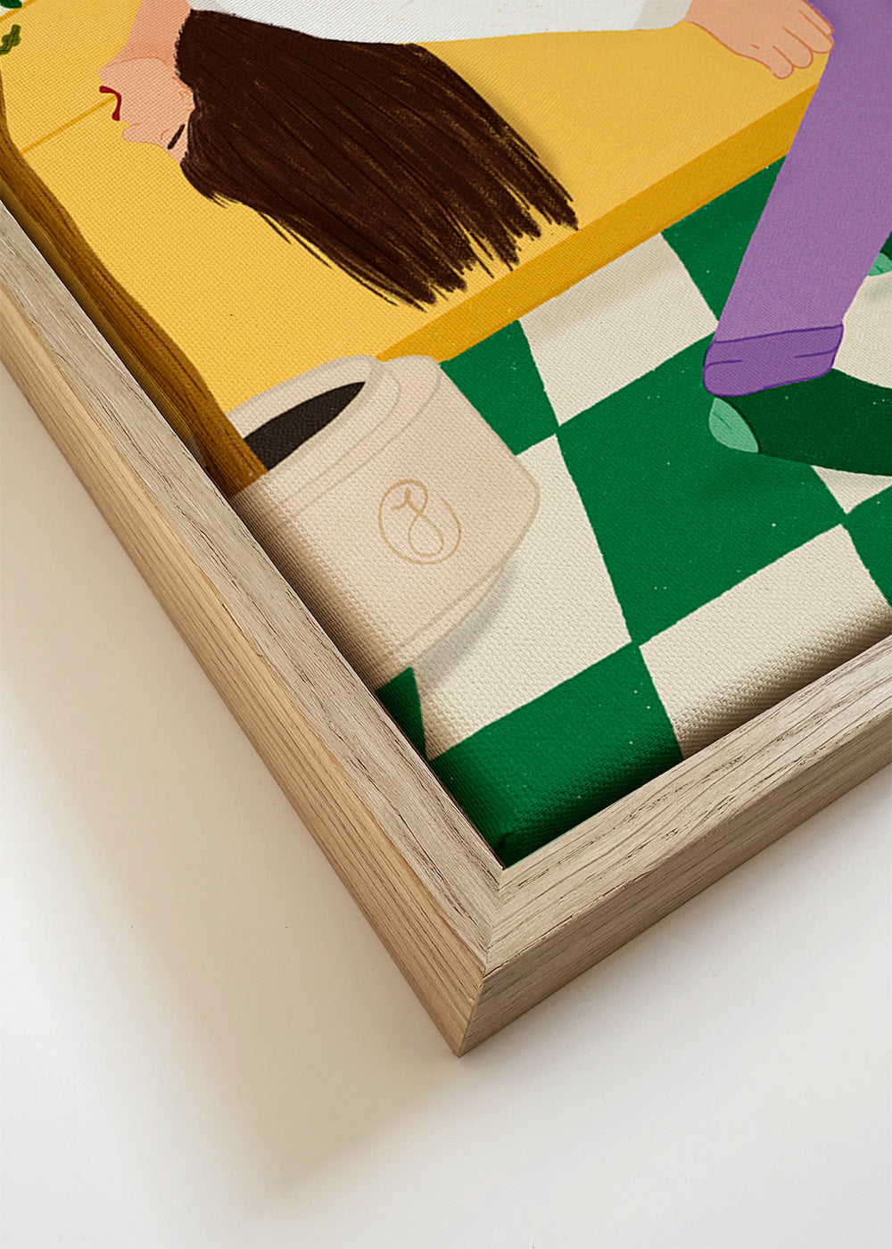 Per evitare rotture, le nostre cornici incorporano vetro acrilico al posto del vetro. Il vetro acrilico riproduce l'effetto del vetro, ma evita possibili danni durante il trasporto o il posizionamento della cornice.