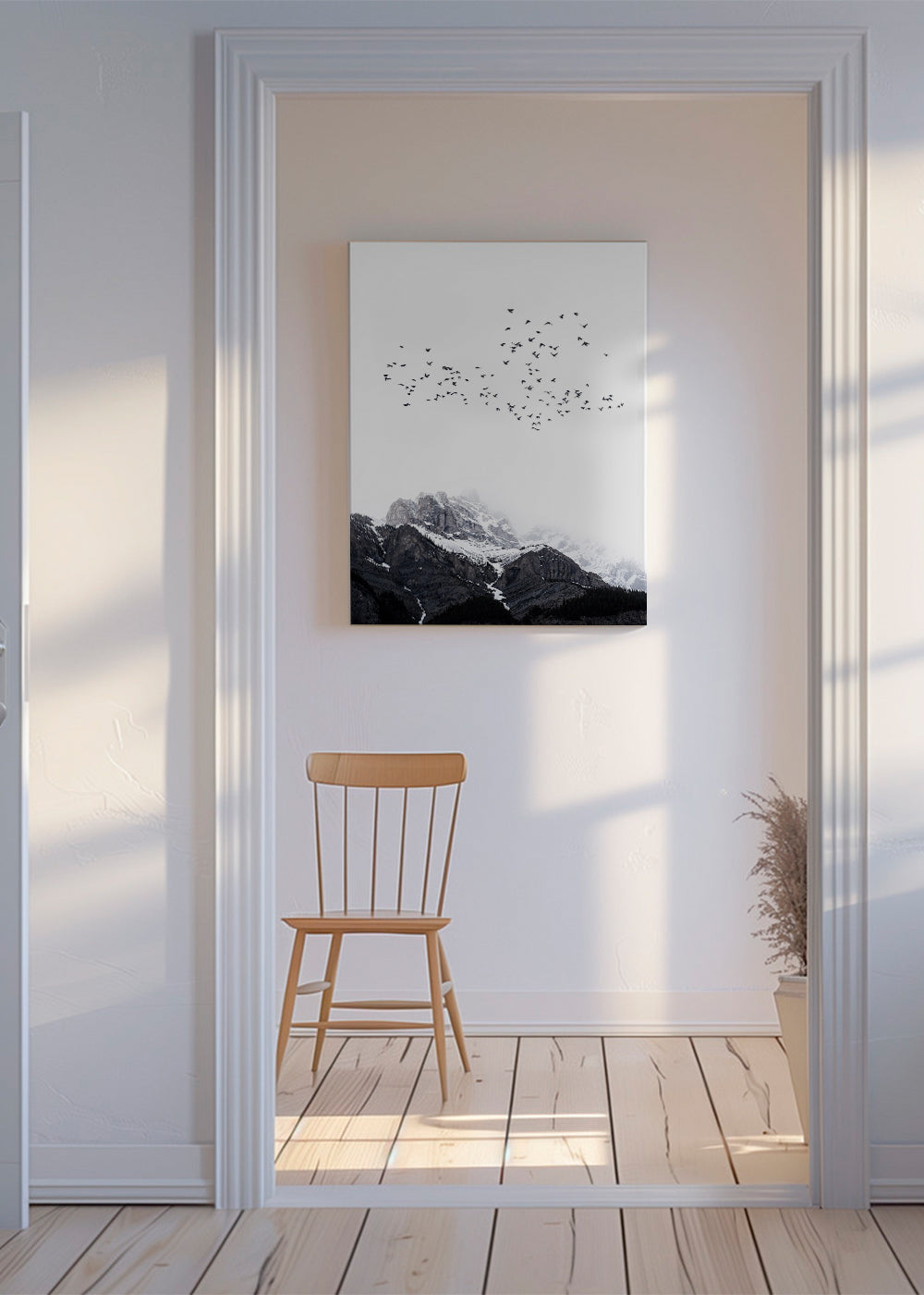 Un quadro della serie di quadri di paesaggi montani, di KUBISTIKA, con colori nero, e da formato verticale. L'home decor ispirato ai paesaggi dà un tocco di freschezza a qualsiasi spazio. Realizza piccoli angoli ricchi di arte.