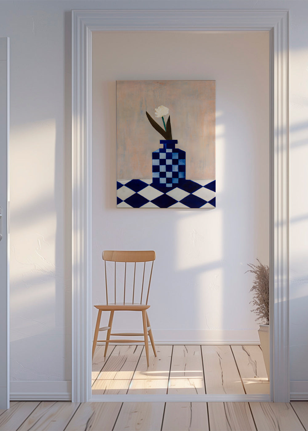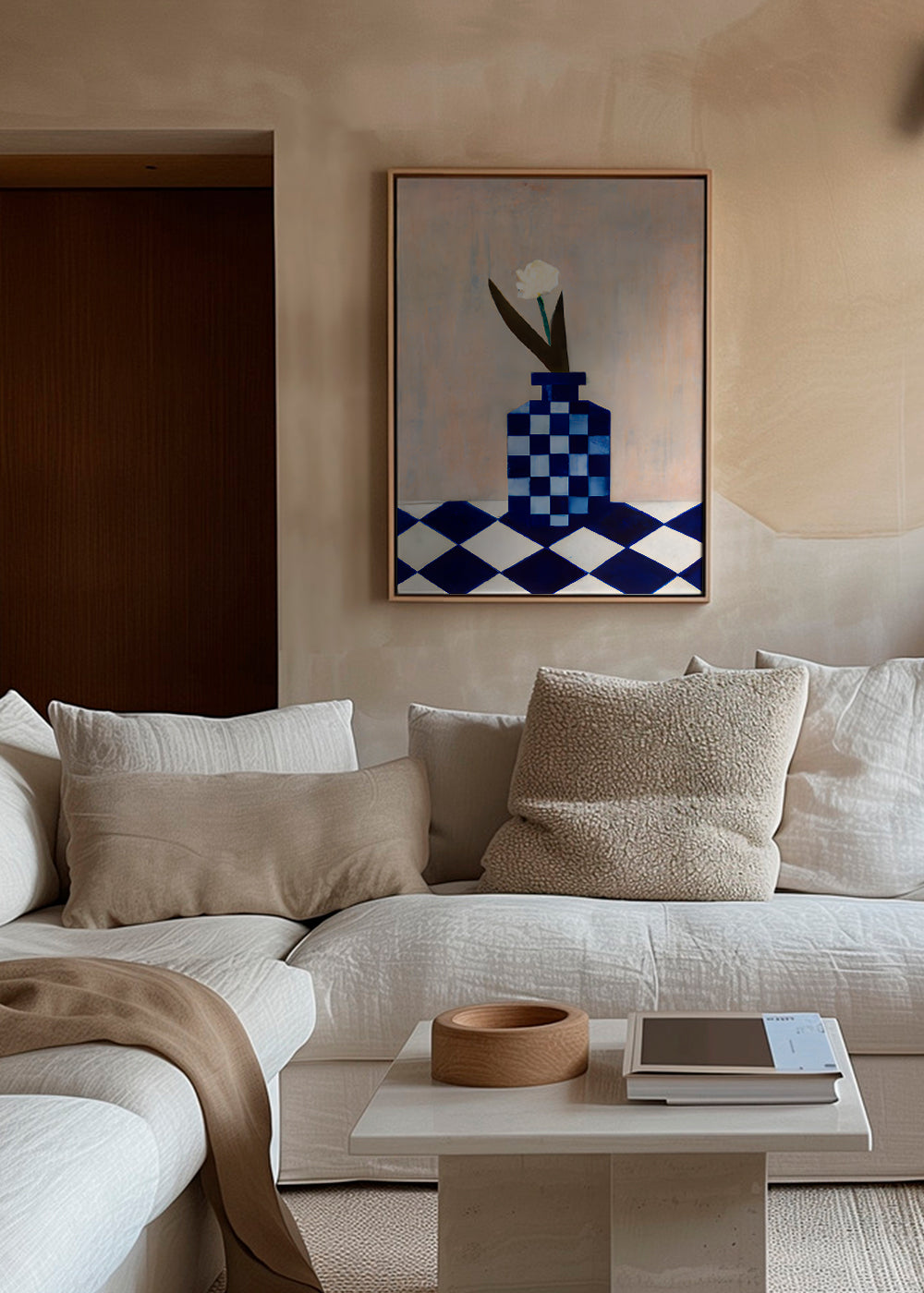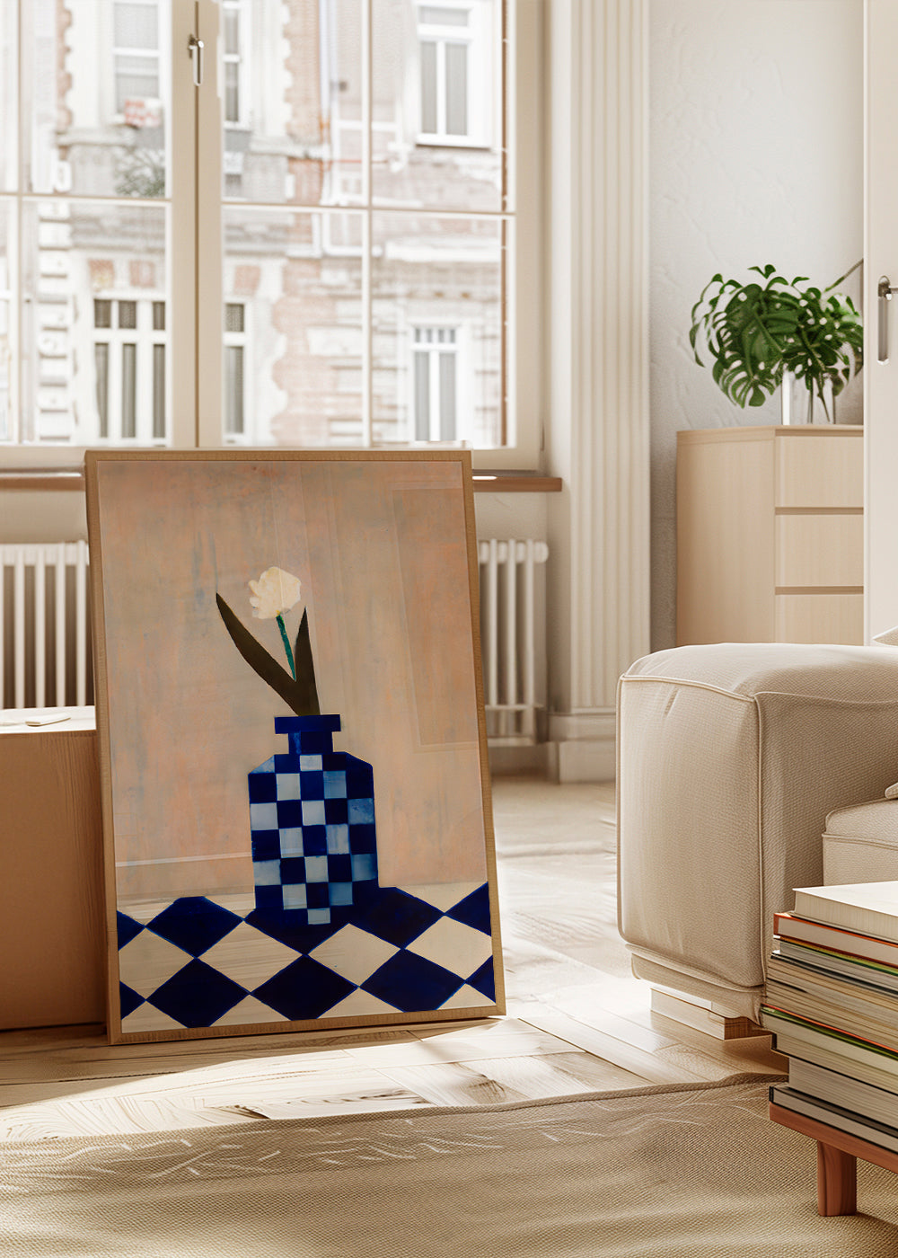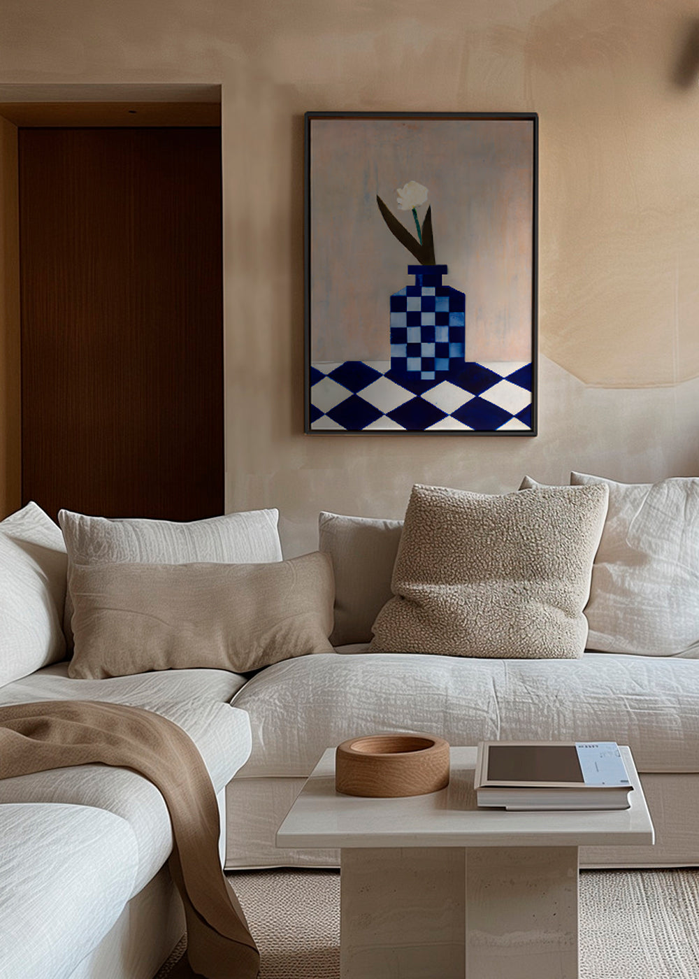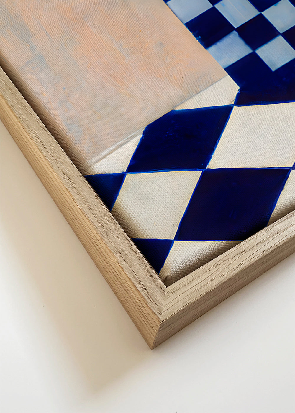 Questo quadro ispirato alla collezione di quadri geometrici, della collezione dell'artista Interiorisla, con tonalità di colori blu, e ideale da mettere in posizione verticale. Le forme geometriche e astratte contribuiscono a creare un ambiente spensierato e creativo. Arte e design allo stato puro.