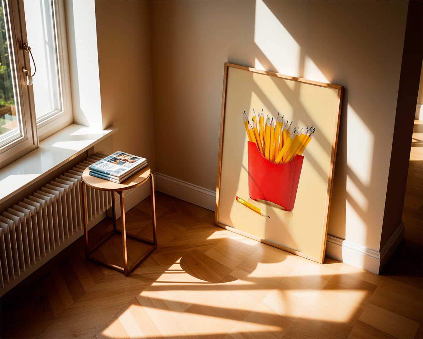 Se combini una delle nostre stampe con una delle cornici che offriamo, riceverai le stampe incorniciate e pronte per essere appese. Nel caso in cui acquisti la stampa e la cornice separatamente, o se desideri includere le tue stampe, apri le estremità posteriori, rimuovi il coperchio e includi il tuo foglio. È facile!