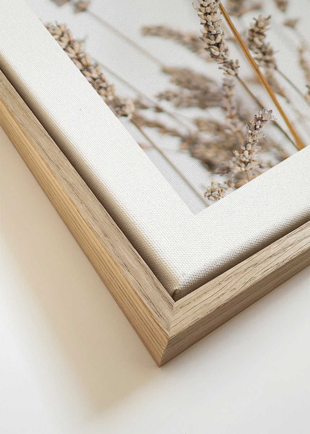 Le cornici in legno fino a 50x70 (compreso) hanno una larghezza di 1,5 cm e una profondità di 3 cm, mentre in quelle più grandi la larghezza è di 2 cm e una profondità di 3 cm.