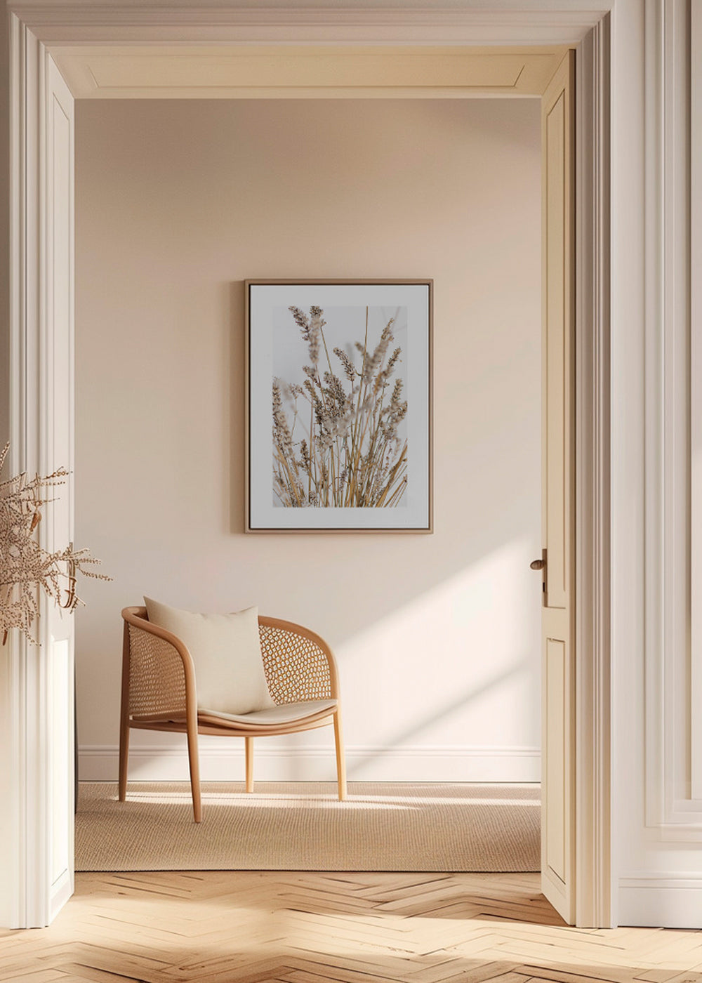 Una immagine della collezione quadri con foglie, realizzata da Magrana Taller, con sfumature dai colori marroni, e da appendere in posizione verticale. Riempi le tue pareti di energia positiva con questo design ispirato alla mindfulness. I quadri rilassanti conferiscono calore e armonia all'abitazione. Lascia che l'arte riempia la tua casa. Quest'opera include un margine bianco che incornicia l'immagine e ne valorizza lo stile.