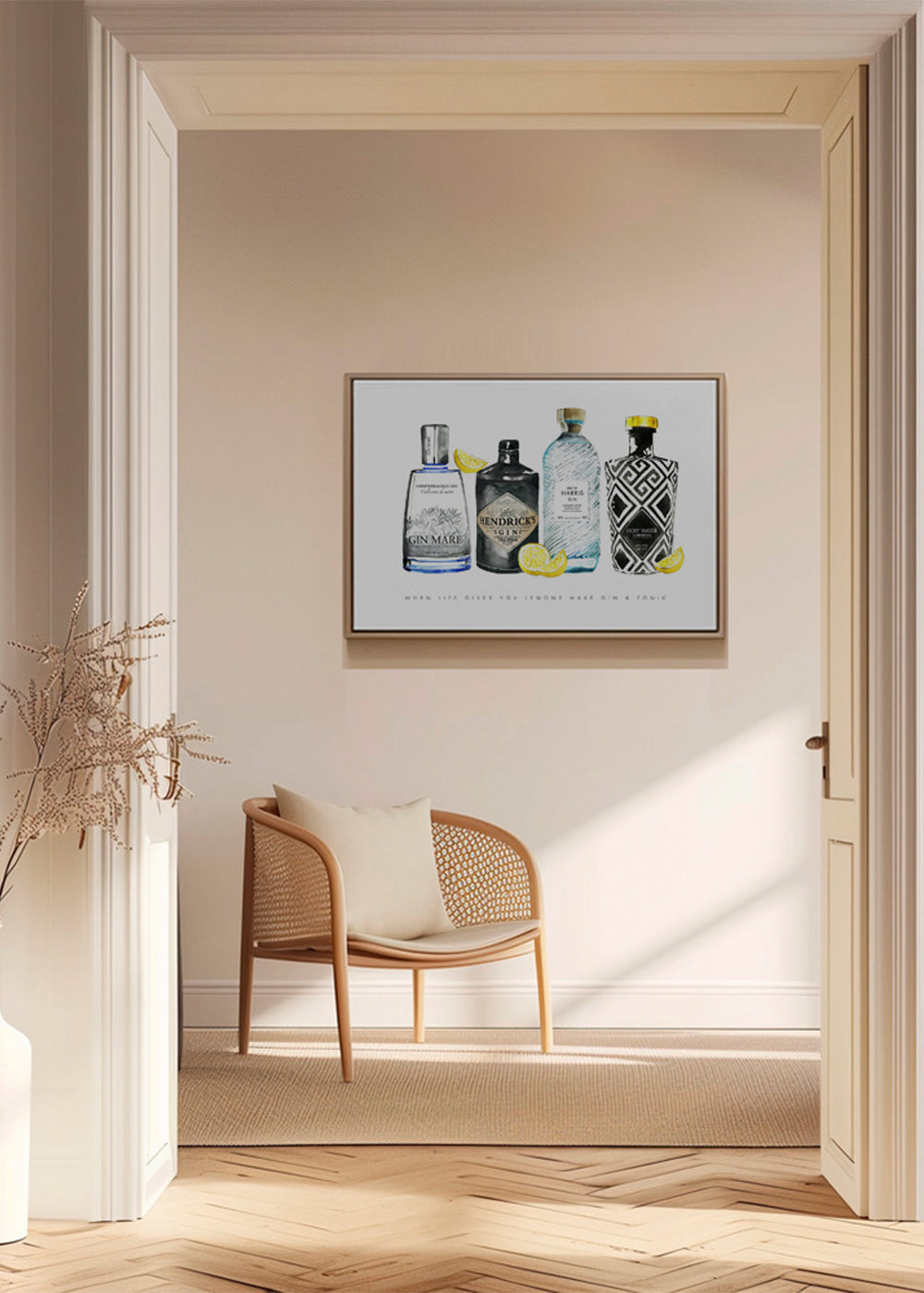 Una immagine della nostra collezione di posters con liquore e cocktail, dell'artista Mercedes Lopez Charro, sui toni gialli, e da appendere in posizione orizzontale. Con la natura nel suo massimo splendore, i quadri di paesaggi trasmettono grande serenità. Arte e design allo stato puro.