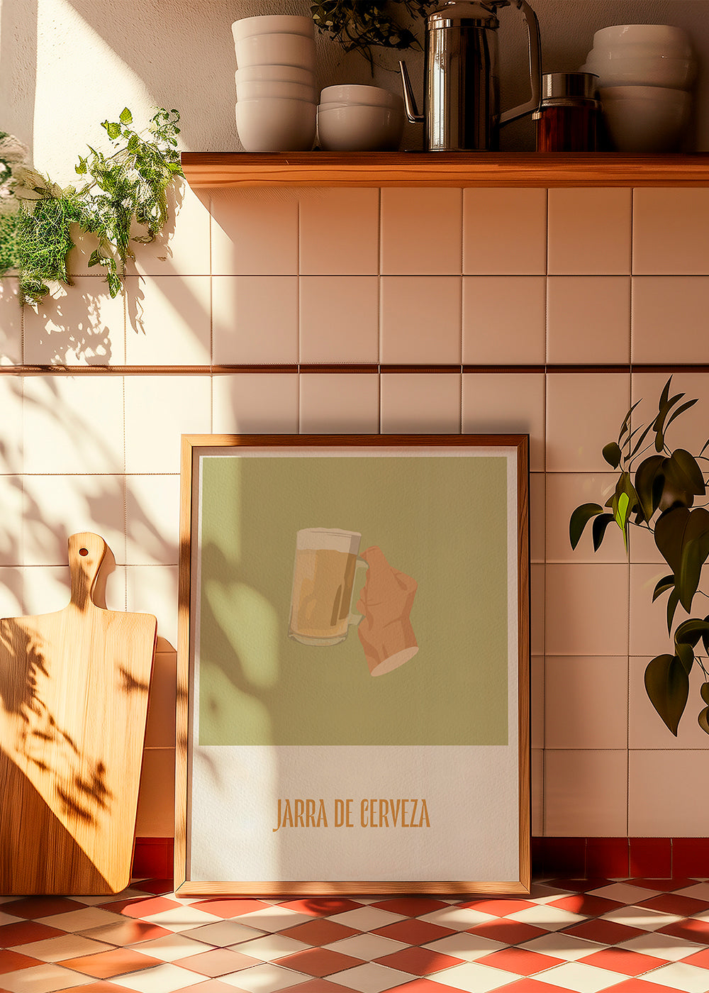 Un quadro appartenente alla categoria di posters di birra, dell'artista Nerea Ramírez, sui toni verdi, e orientata in senso verticale. Trasforma la tua cucina in un ambiente divertente grazie a questo e altri quadri per la cucina. Crea l'ambiente perfetto.