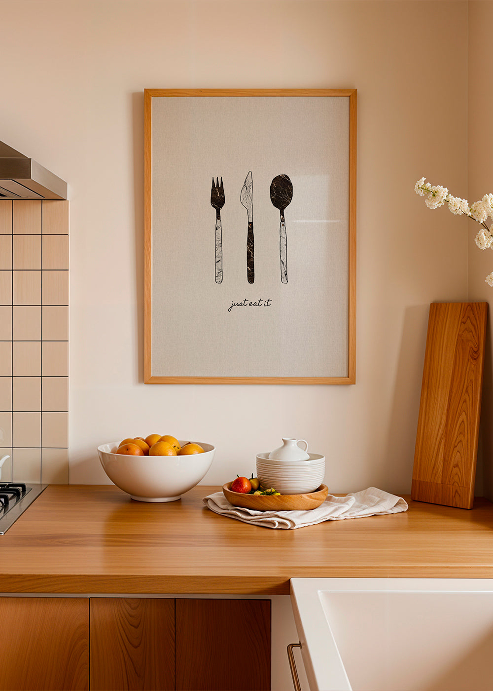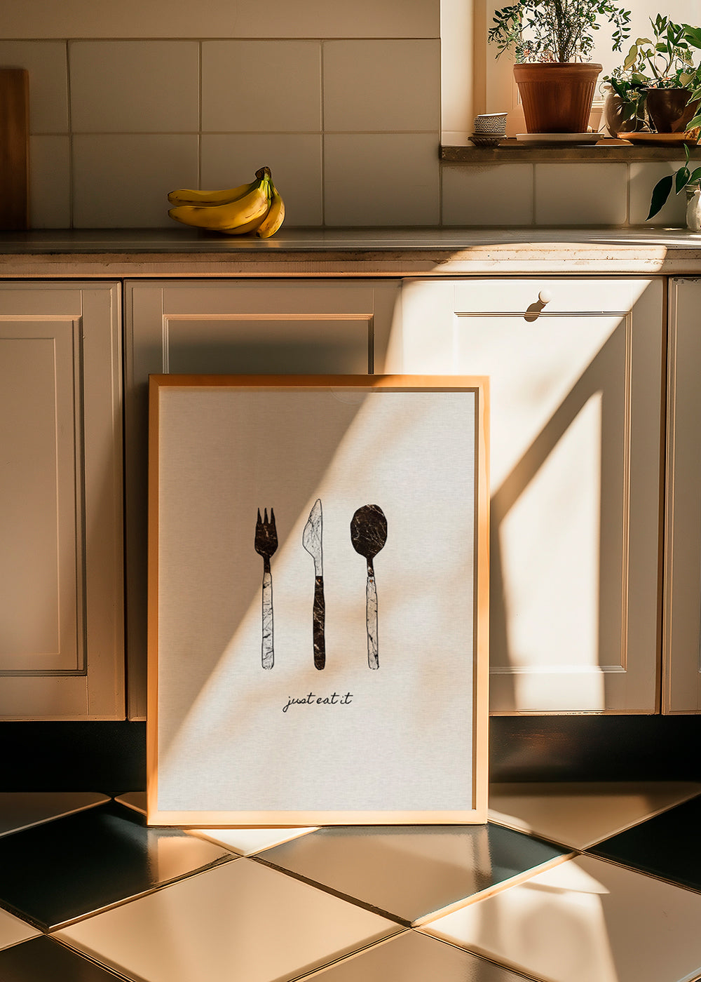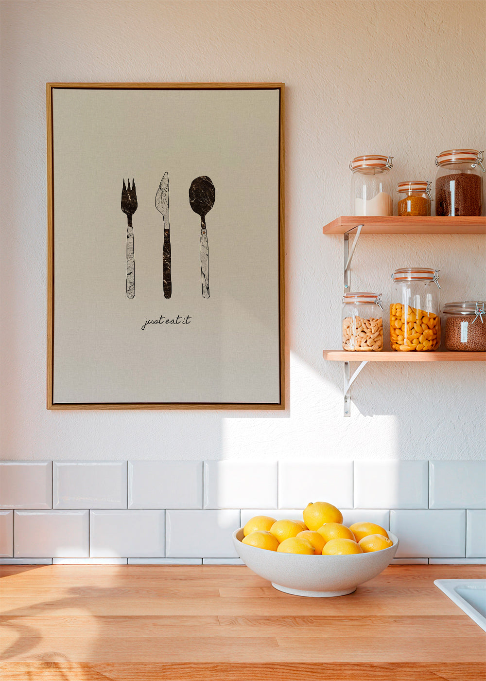 Un quadro della serie di quadri con cibo e bevande, della collezione dell'artista Orara Studio, con pigmenti grigio, e con orientamento verticale. Anche la cucina può essere uno spazio accogliente. Abbina questo design con altri quadri per la cucina e crea una cucina incredibilmente chic. Fai delle tue pareti un'opera d'arte.