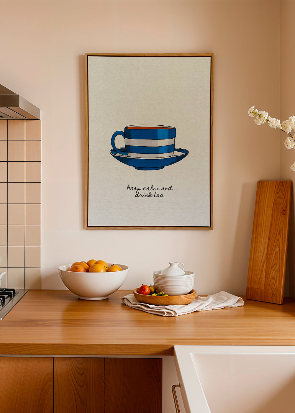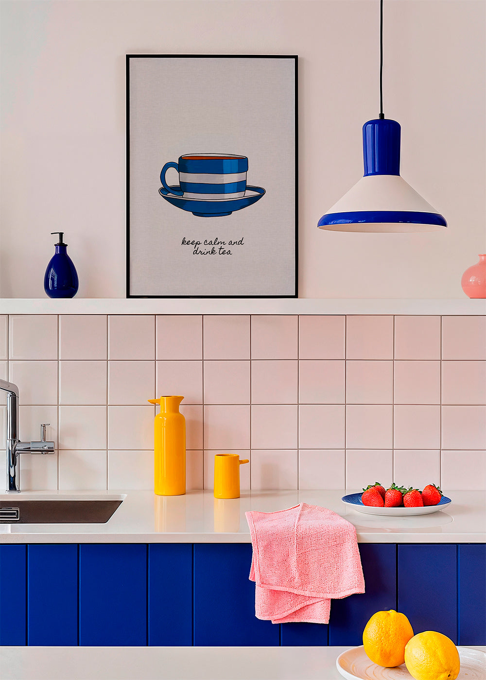 Un quadro appartenente alla categoria di caffè nei quadri, realizzata da Orara Studio, sui toni blu, e orientata in senso verticale. Riempi di opere d'arte la tua cucina abbinando quest'opera ad altre immagini ideali per la cucina. La personalità di una casa passa per le sue pareti.