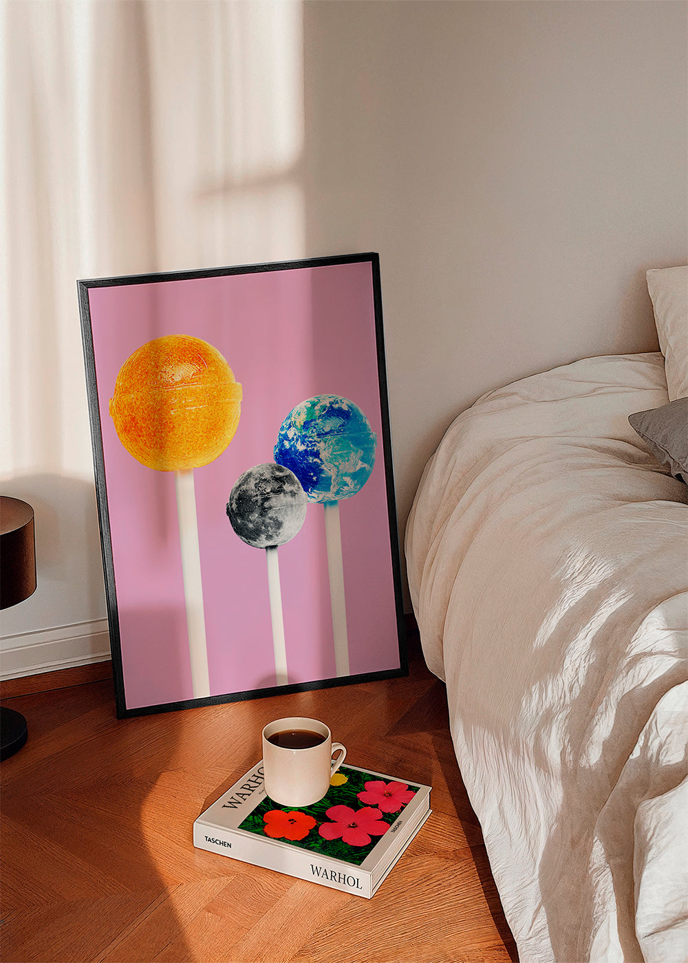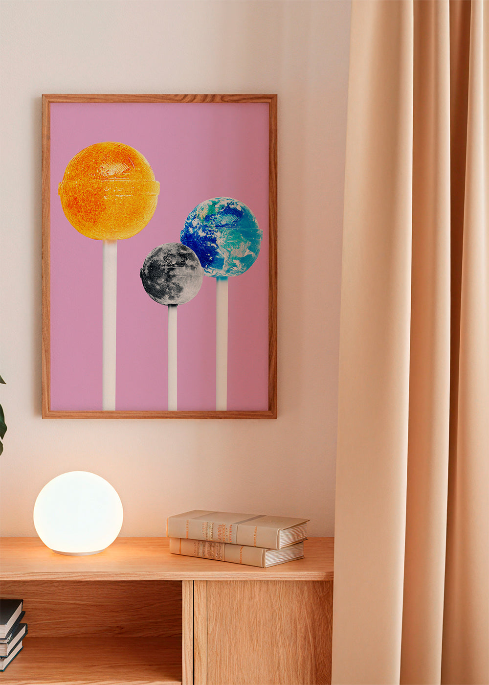 Bella pieza della serie di quadri con pianeti, dell'artista Jonas Loose, sui toni blu, e nel formato verticale. Chi ha detto che decorare le pareti della cucina è difficile? Dai un tocco di stile alle pareti della tua cucina con questa stampa. Crea una perfetta decorazione da parete.