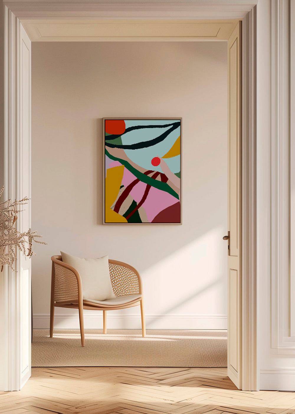 Bella pieza della serie di quadri con foglie, di Juline Lobão, dalle sfumature multicolore, e nel formato verticale. Riempi di opere d'arte la tua cucina abbinando quest'opera ad altre immagini ideali per la cucina. Realizza un home decor ricco di arte.
