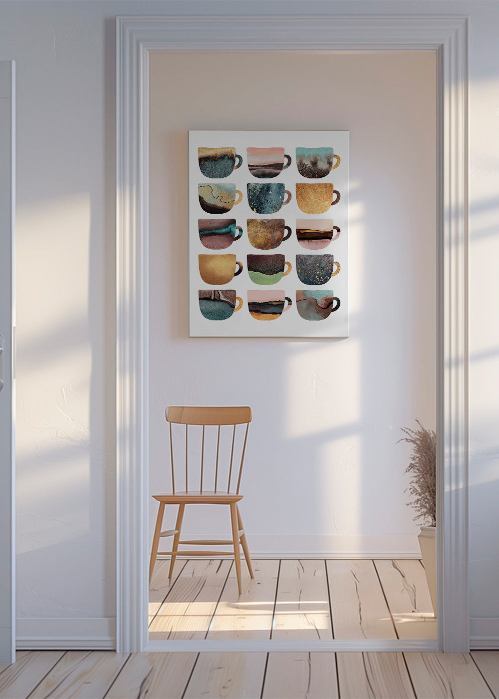 Questa opera ispirato alla collezione di quadri con pattern, realizzata da Elisabeth Fredriksson, con sfumature dai colori multicolore, e nel formato verticale. Decorare le pareti della cucina con quadri e stampe va molto di moda e questo è l'articolo perfetto per farlo. Rinnovare le pareti può dare uno stile del tutto nuovo al tuo home decor.