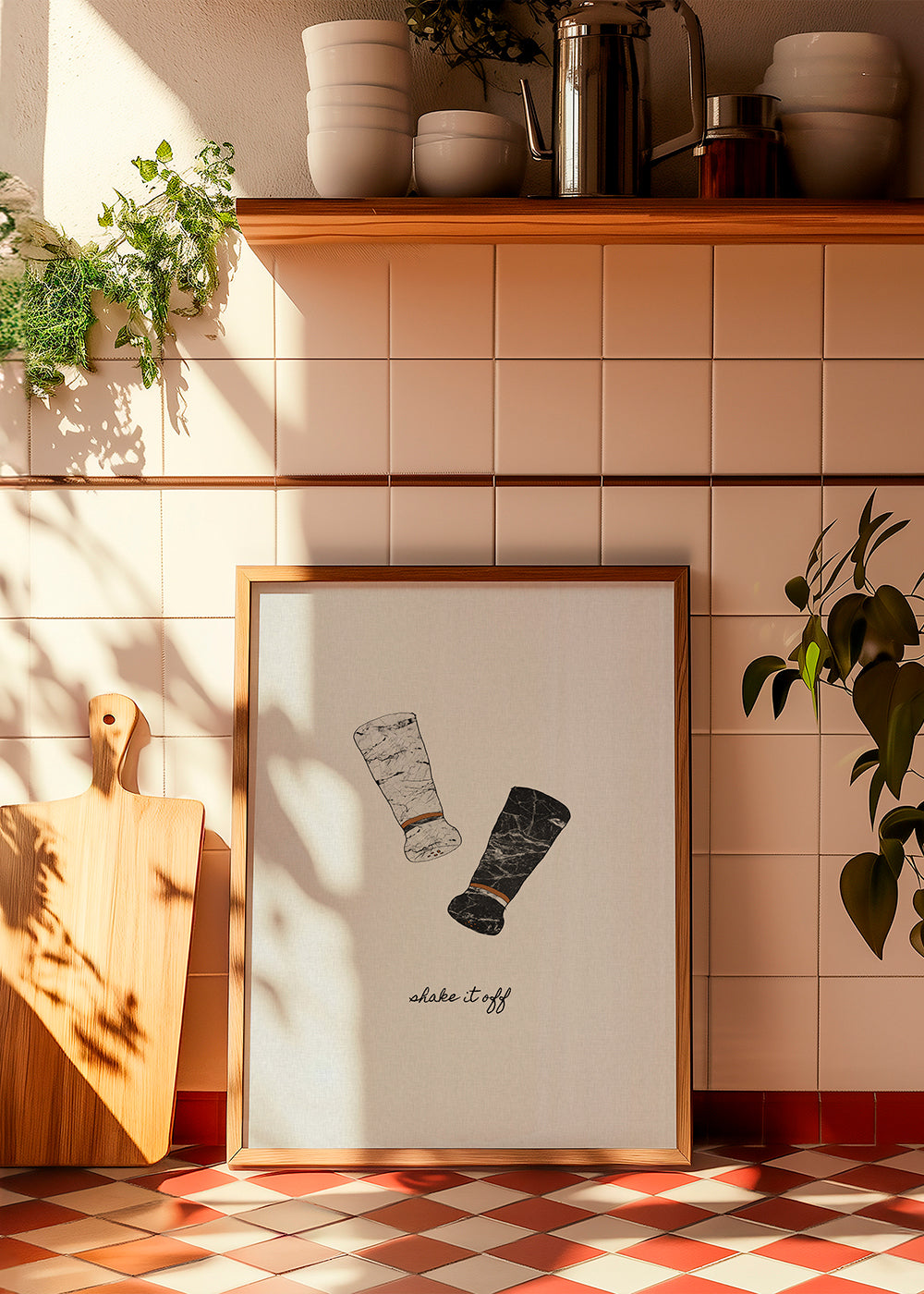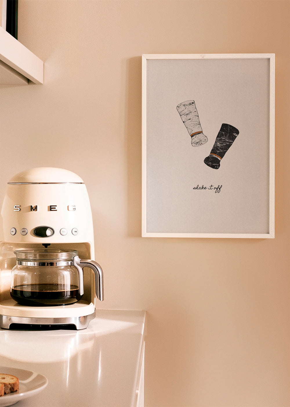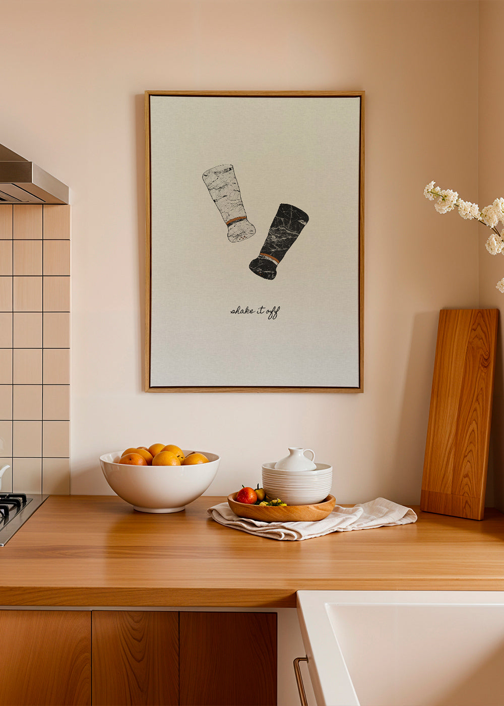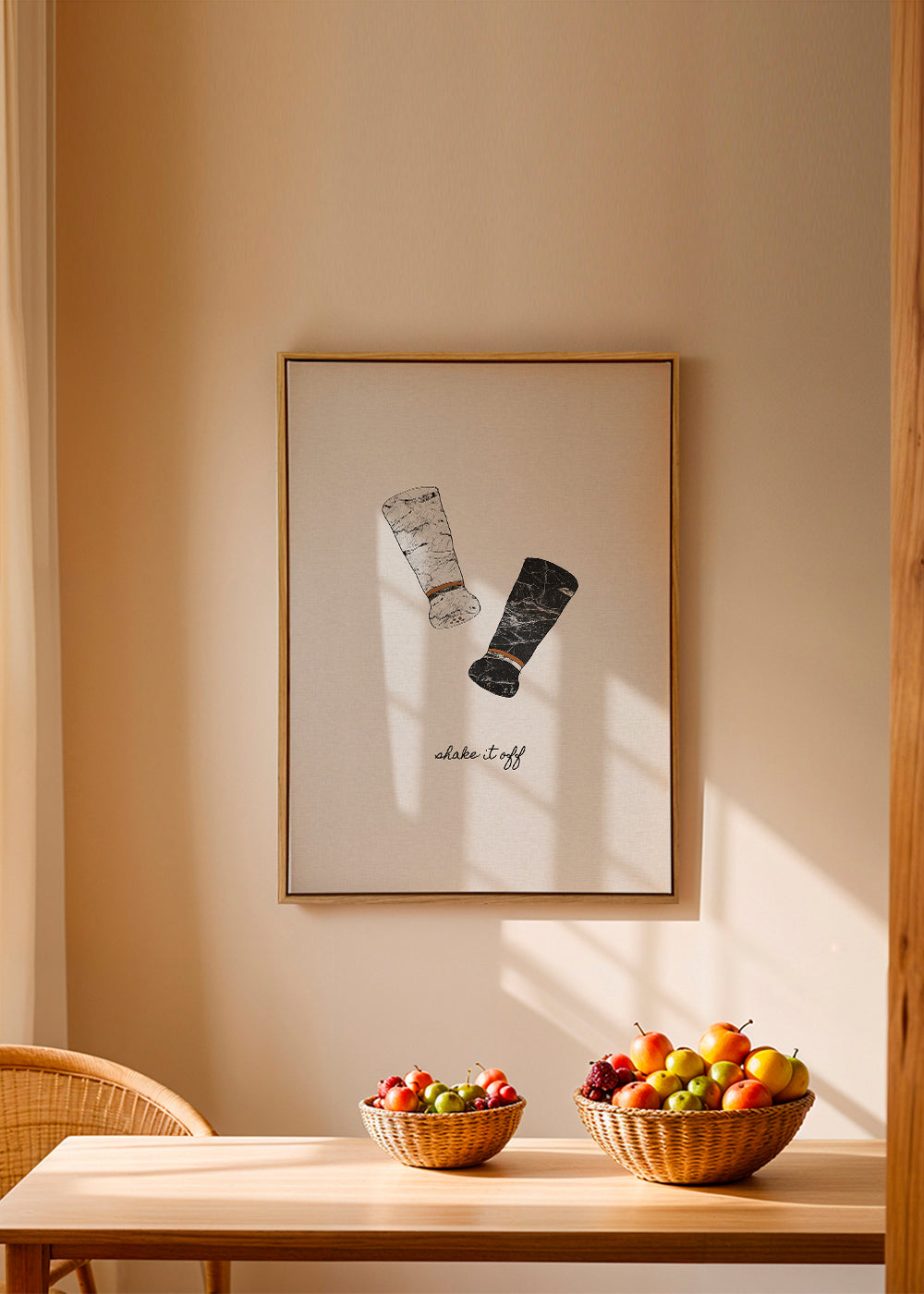 Un design della nostra collezione di quadri con cibo e bevande, ideata da Orara Studio, con sfumature dai colori grigio, e nel formato verticale. Trasforma la tua cucina in un ambiente divertente grazie a questo e altri quadri per la cucina. Arte e design allo stato puro.