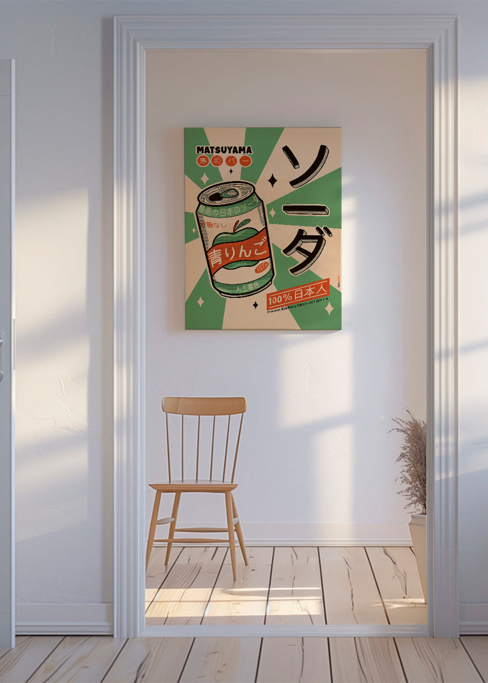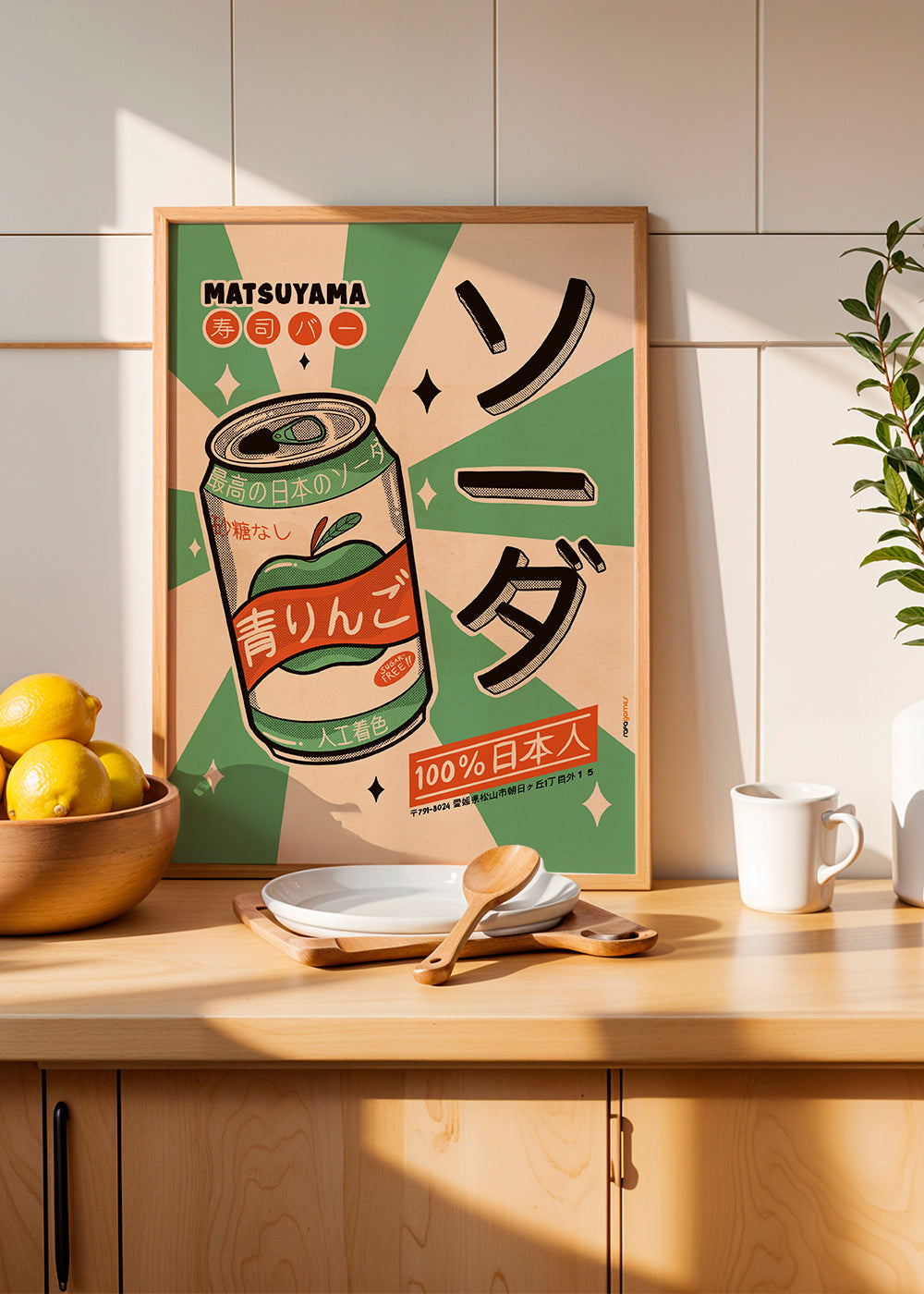 Bella opera nello stile dei nostri quadri giapponesi, di Rafa Gomes, con sfumature dai toni verdi, e orientata in senso verticale. Dai un tocco vintage all'ambiente, abbinando questo poster ad altri poster in stile vintage. Le pareti decorate con i quadri sono il non plus ultra.