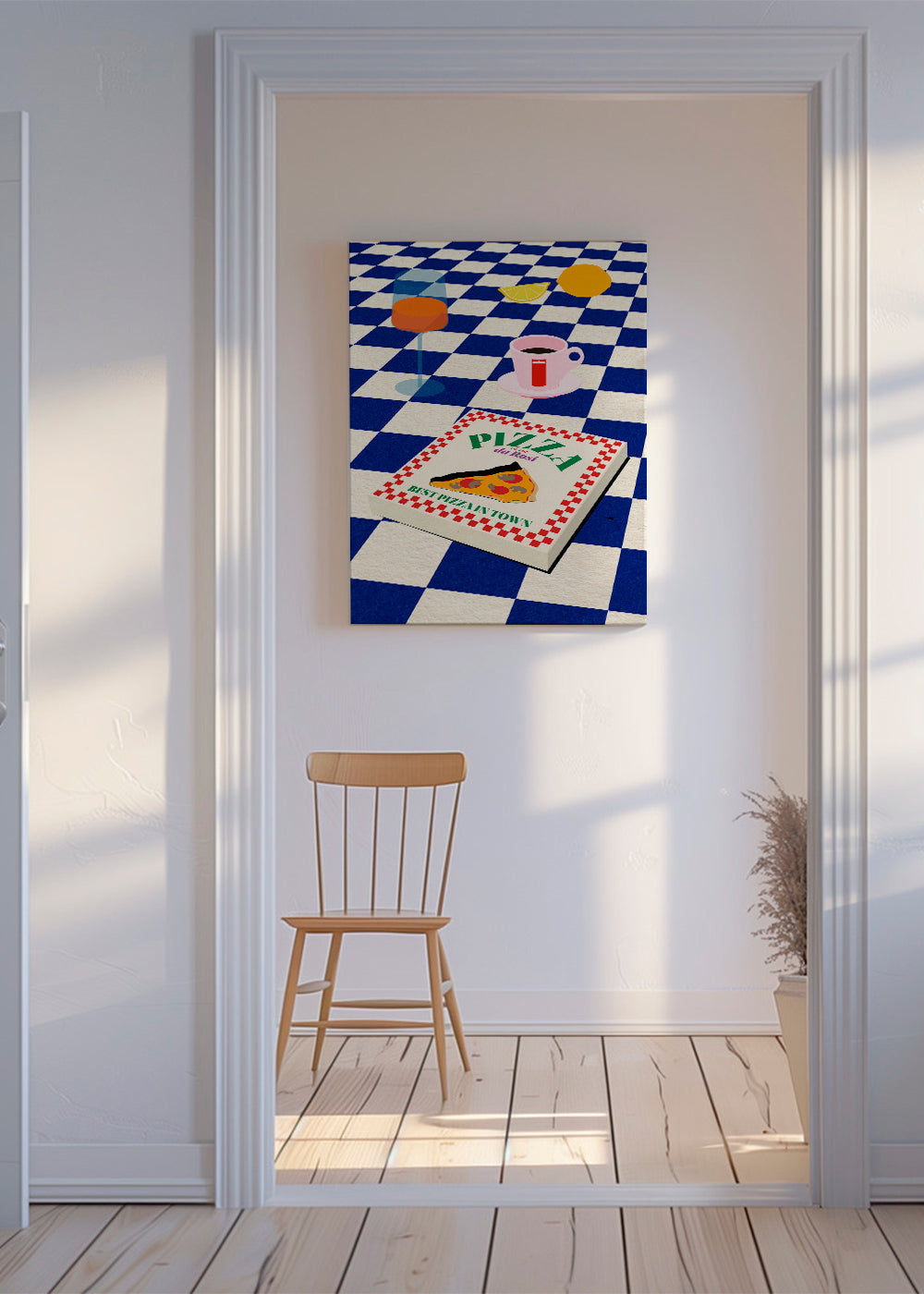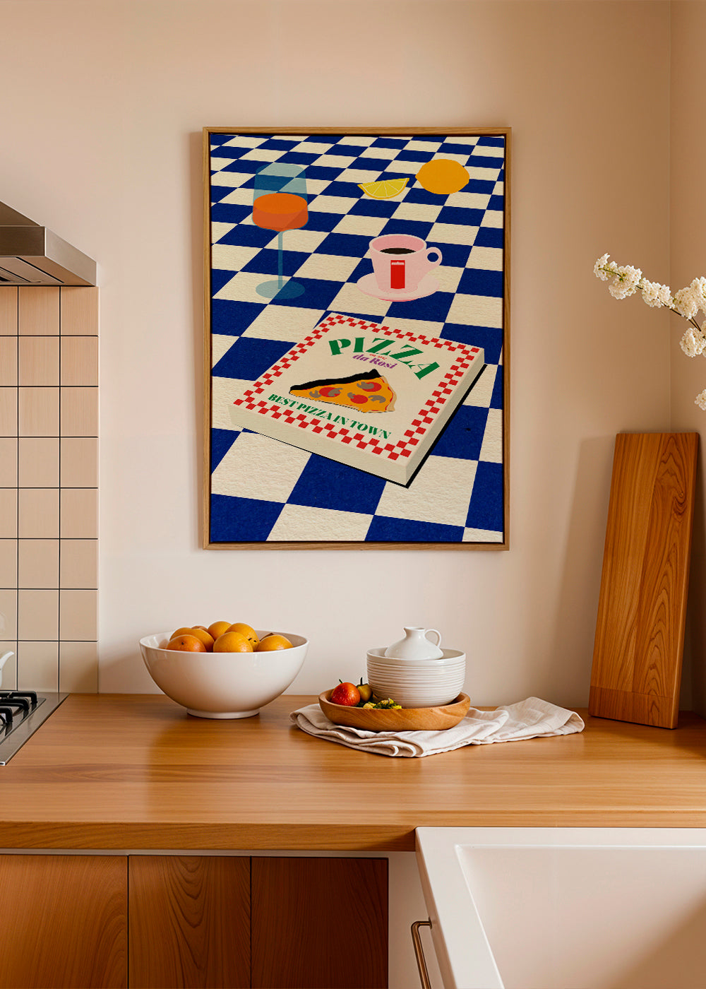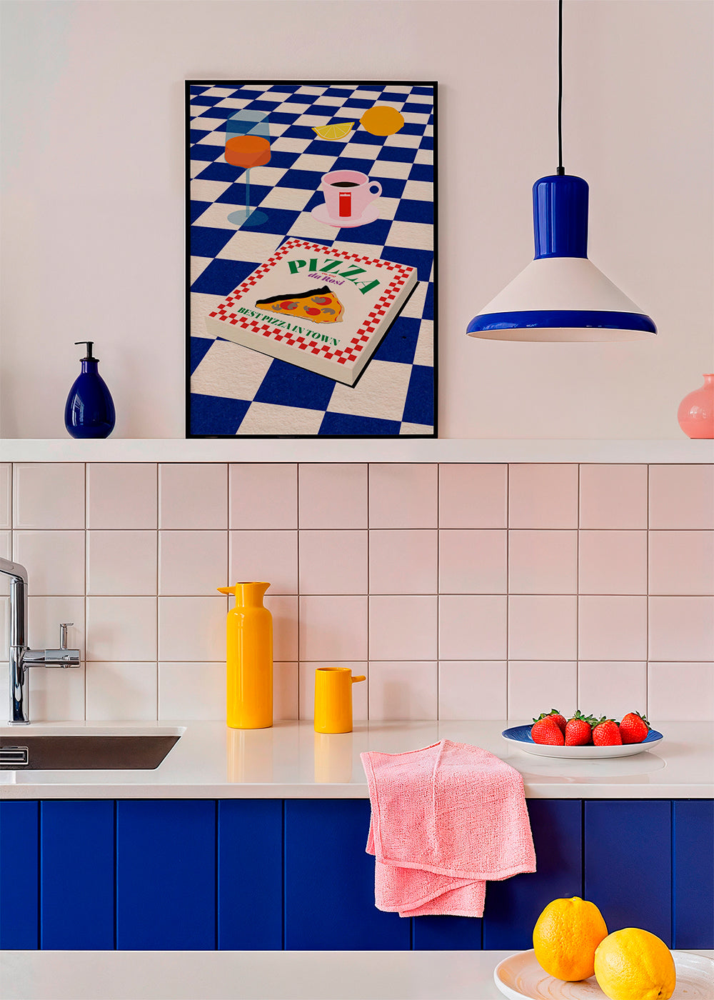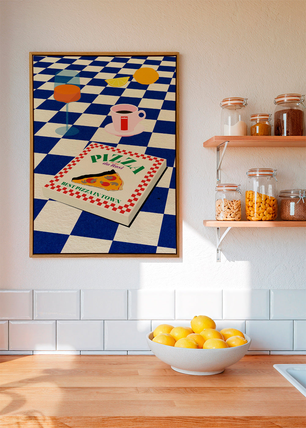 Una stampa della nostra categoria di quadri con pizza, dell'artista 1x, con pigmenti blu, e ideale da mettere in posizione verticale. Decorare le pareti della cucina con quadri e stampe va molto di moda e questo è l'articolo perfetto per farlo. Il quadro che quella parete sta aspettando.