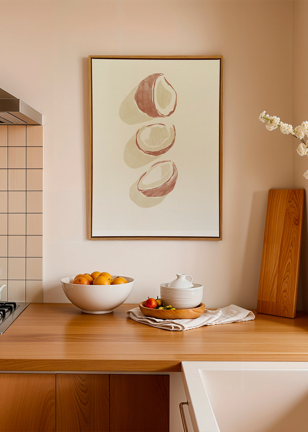 Bella stampa della collezione quadri con frutta, di Yuyu Pont, sui toni marroni, e da mettere in posizione verticale. I quadri per la cucina sono un complemento decorativo perfetto per fare di questo ambiente un luogo ancora più accogliente. Un tocco moderno per la tua abitazione.