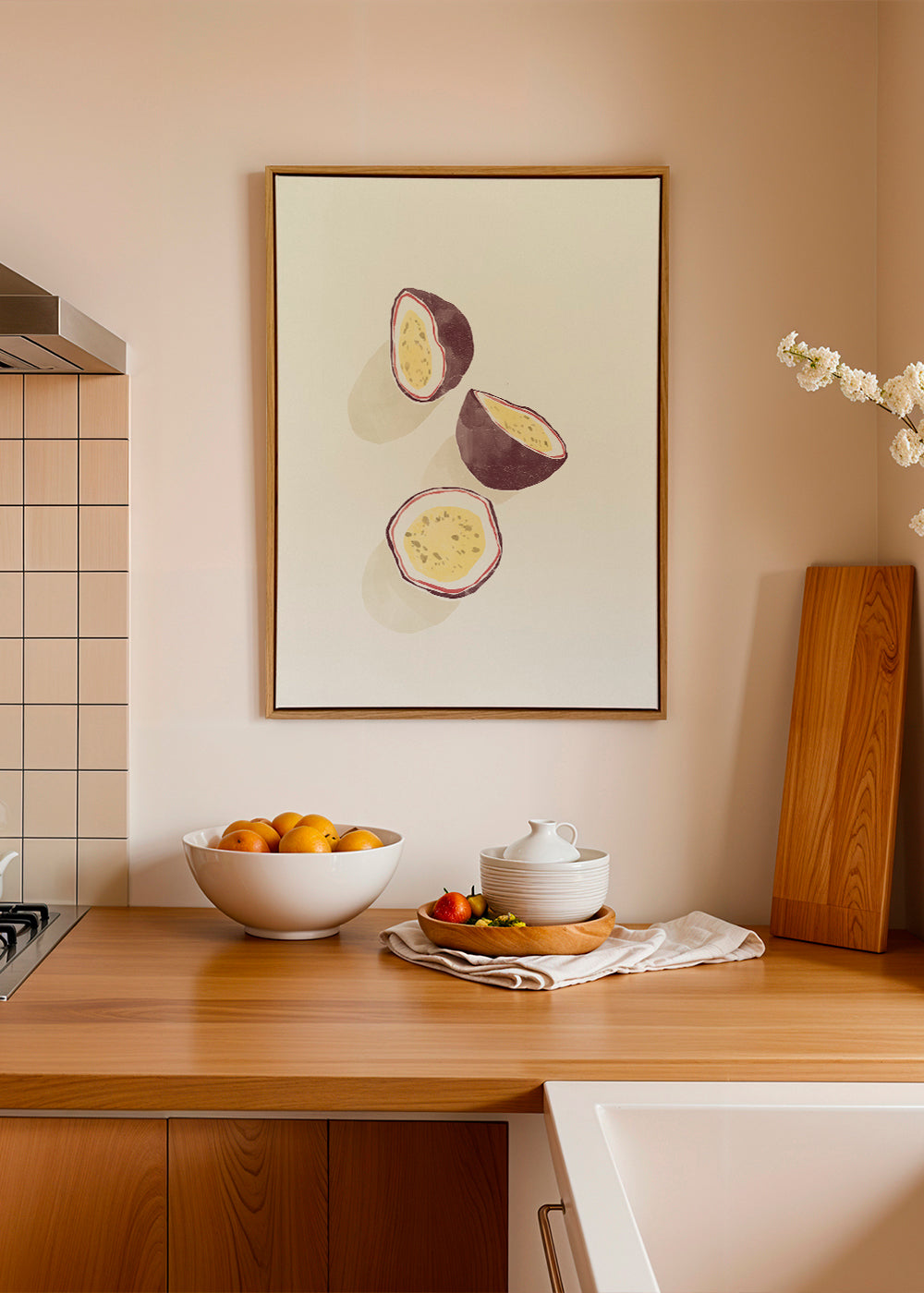 Bello design della nostra collezione di quadri con frutta, originale di Yuyu Pont, con sfumature dai toni gialli, e con posizione verticale. Si tratta di un'opera ideale per la decorazione delle pareti della cucina. Una parete spoglia è priva di carattere, ma con qualche quadro le daremo personalità.