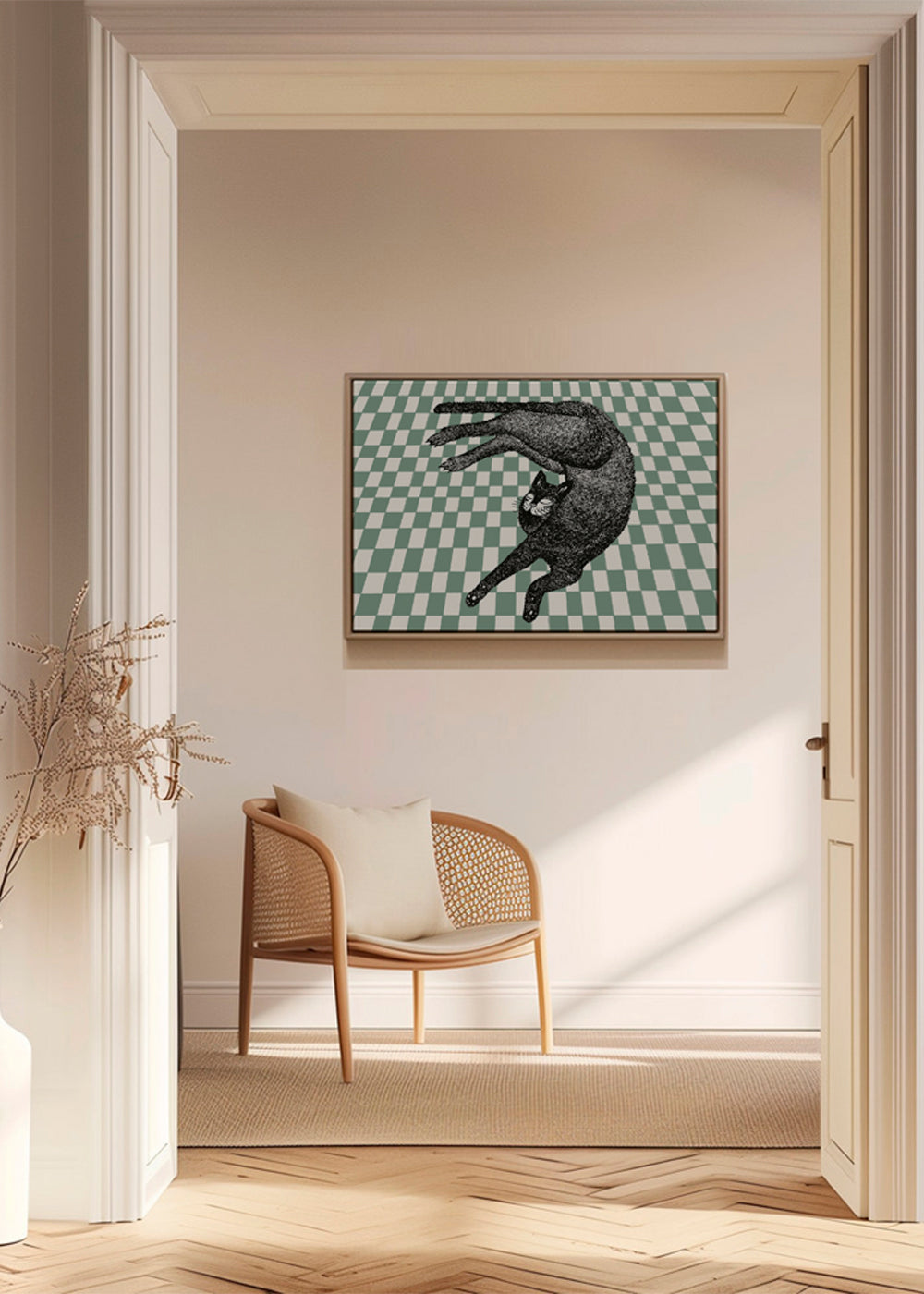 Questa stampa dal nostro repertorio di quadri con gatti, ideata da 1x, con pigmenti grigio, e con disposizione orizzontale. I quadri con illustrazioni sono perfetti da abbinare all'arte minimal e all'arte astratta. Realizza un home decor dal design ricco di stile e creatività.