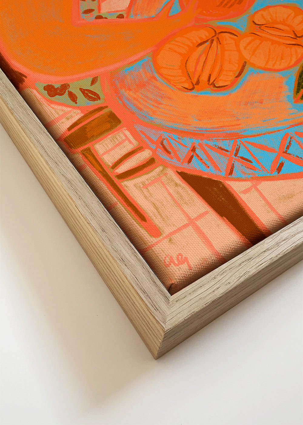 Per evitare rotture, le nostre cornici incorporano vetro acrilico al posto del vetro. Il vetro acrilico riproduce l'effetto del vetro, ma evita possibili danni durante il trasporto o il posizionamento della cornice.