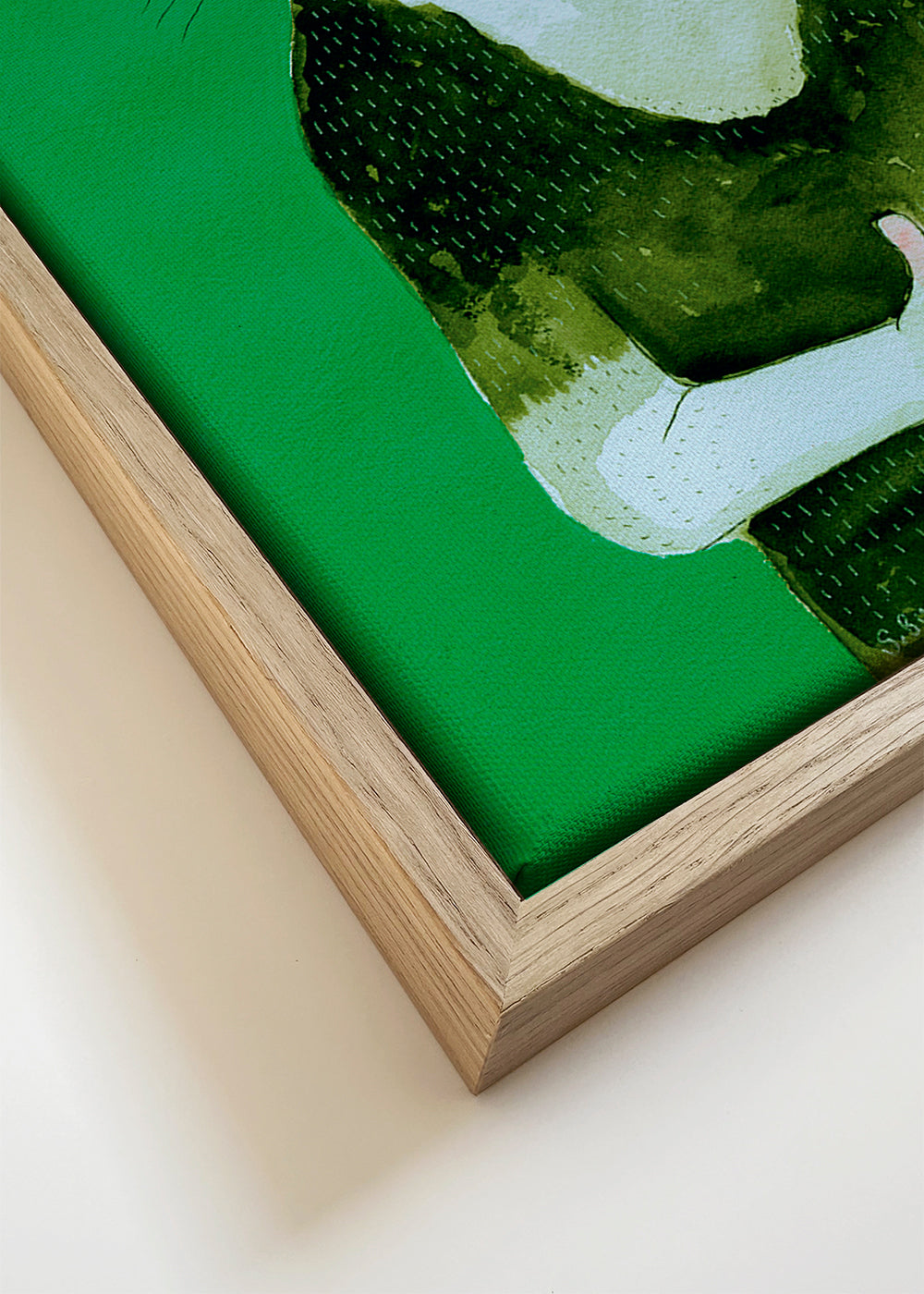 Per evitare rotture, le nostre cornici incorporano vetro acrilico al posto del vetro. Il vetro acrilico riproduce l'effetto del vetro, ma evita possibili danni durante il trasporto o il posizionamento della cornice.