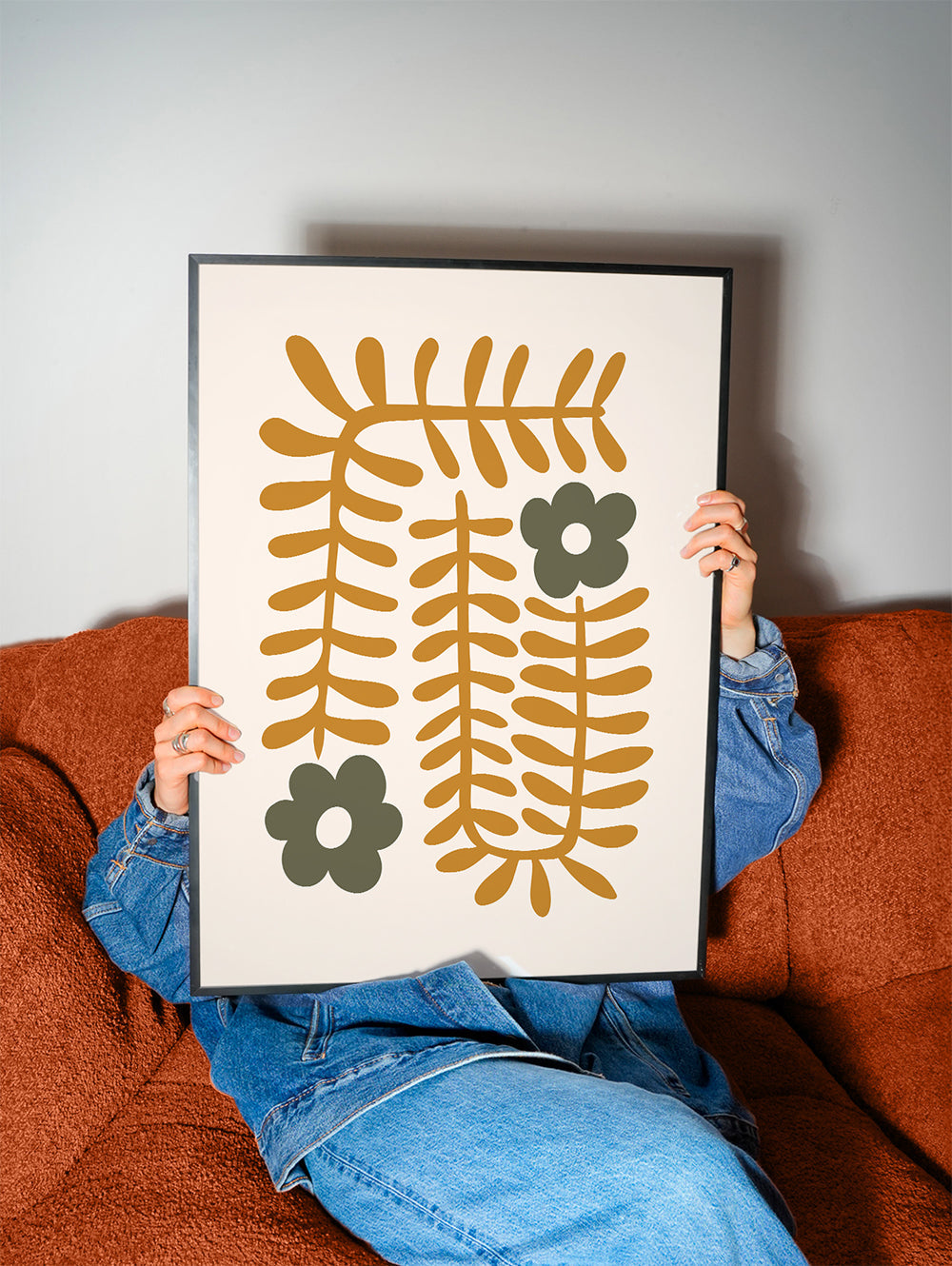 Un design della nostra categoria di quadri di fiori e piante, dell'artista Essentially Nomadic, con pigmenti arance, e ideale da mettere in posizione verticale. I quadri con illustrazioni danno un tocco di originalità all'home decor della tua abitazione. Un tocco moderno per la tua abitazione.