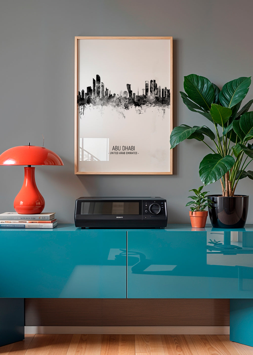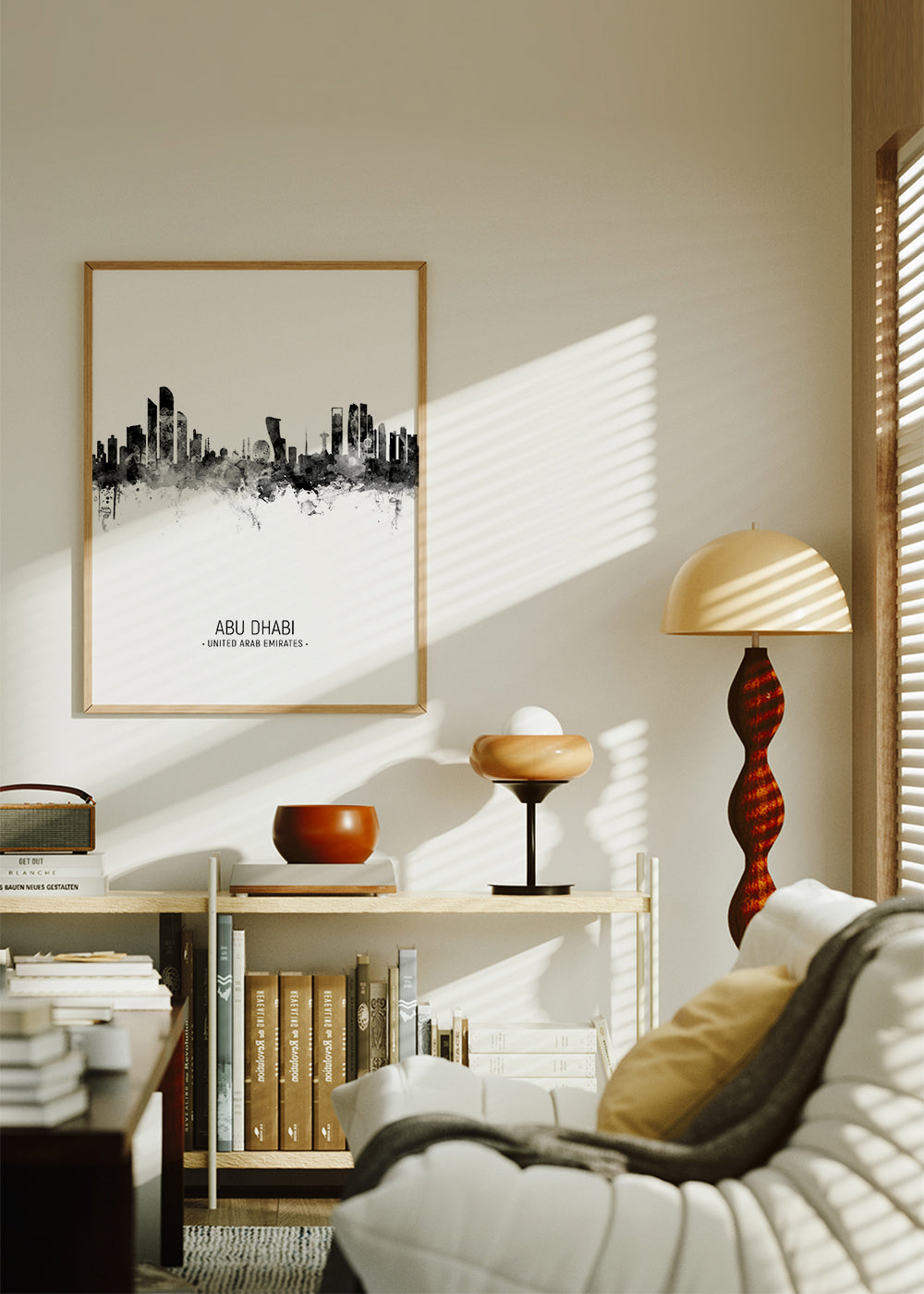 Quadro in stile nordico Abu Dhabi Skyline blanco y negro