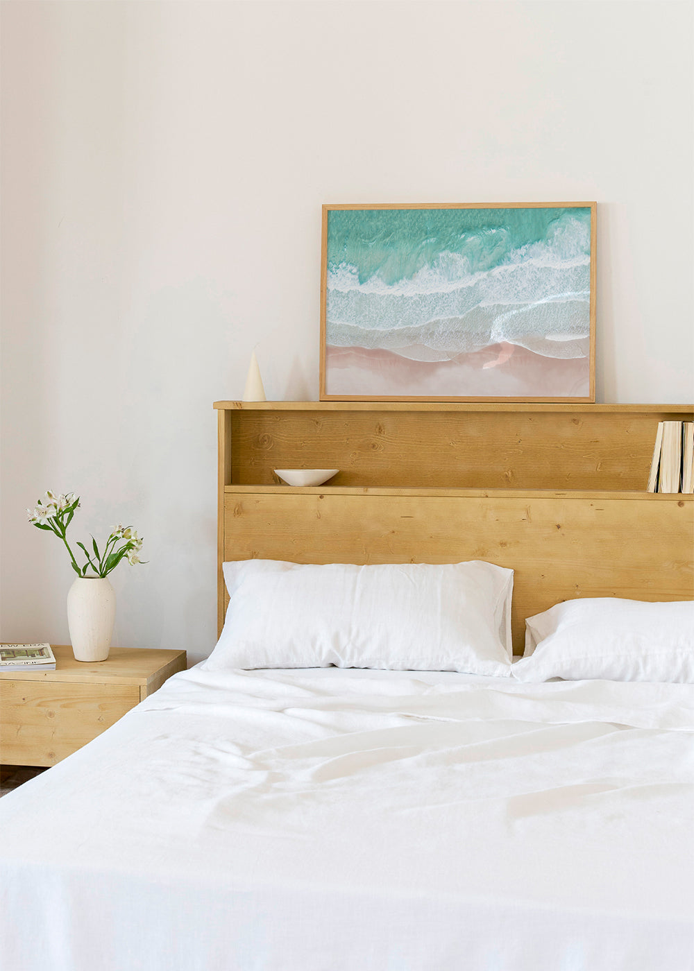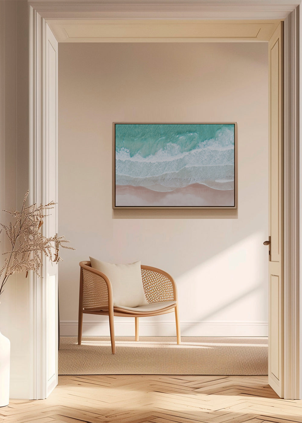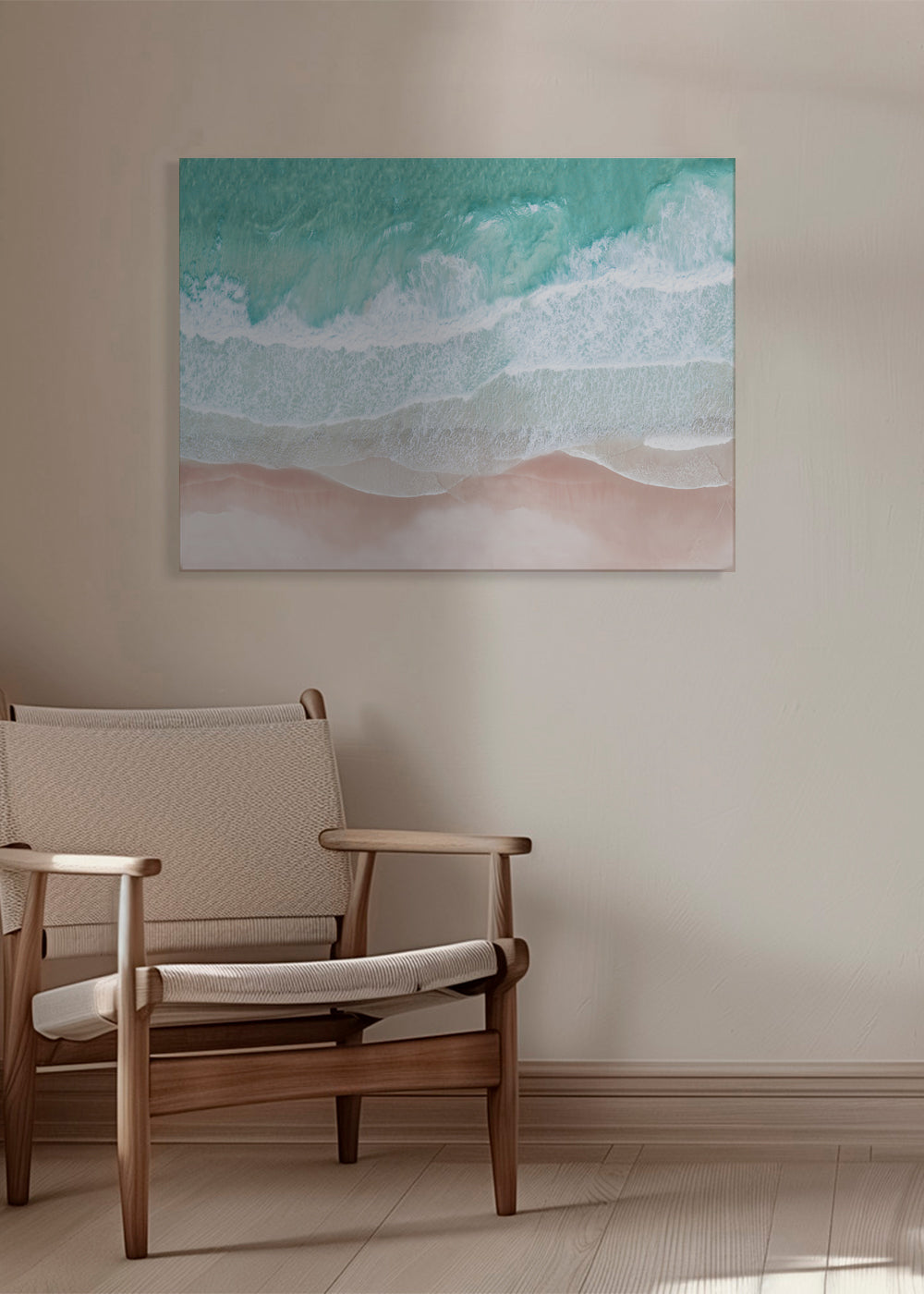 Bella pieza ispirato alla collezione di quadri di spiagge e coste, di Kathrin Pienaar, dalle sfumature blu, e con posizione orizzontale. I quadri di paesaggi sono spettacolari. Abbinali a scritte e frasi per creare composizioni e wall gallery davvero pazzesche. Crea un angolo unico.