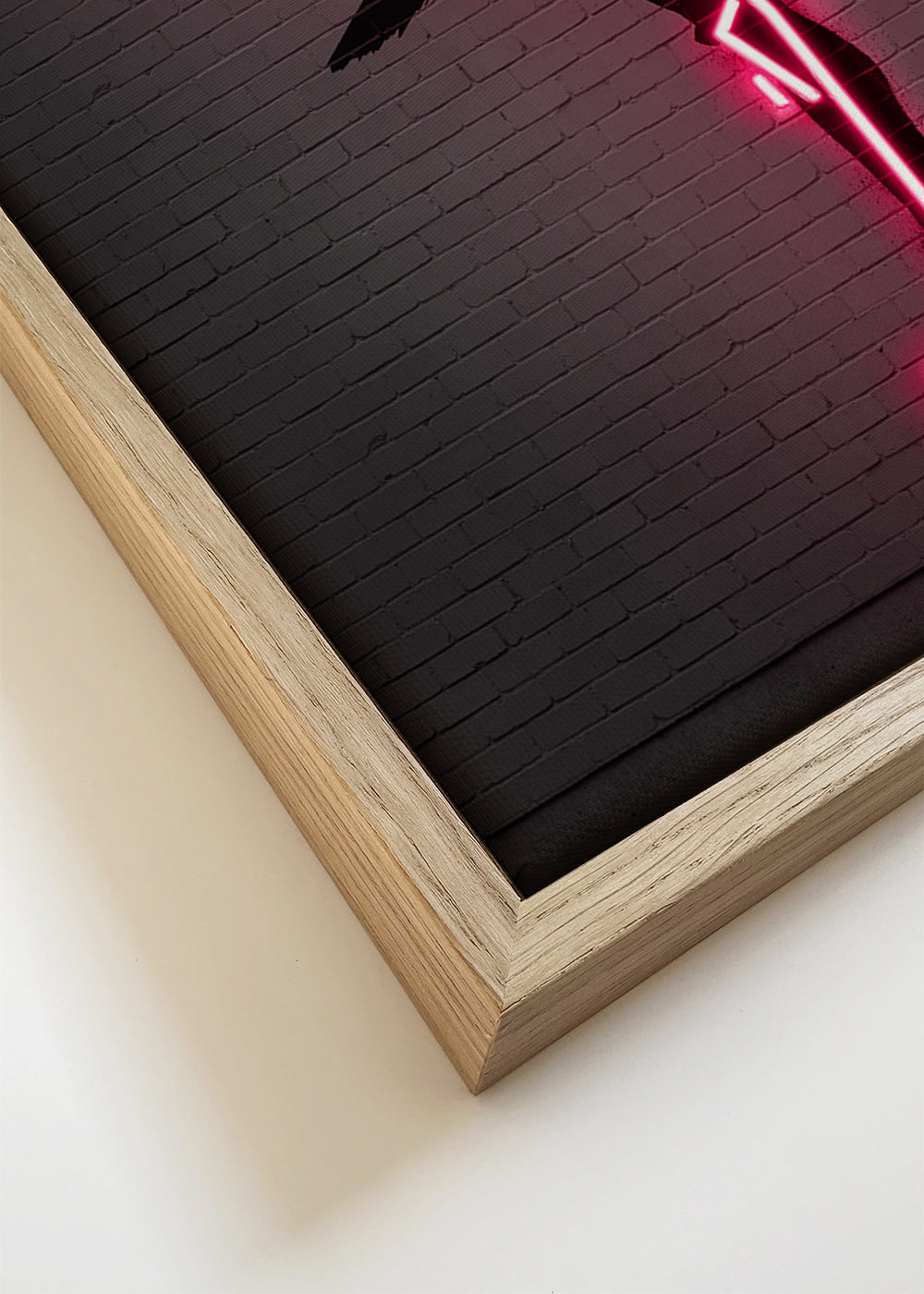Per evitare rotture, le nostre cornici incorporano vetro acrilico al posto del vetro. Il vetro acrilico riproduce l'effetto del vetro, ma evita possibili danni durante il trasporto o il posizionamento della cornice.