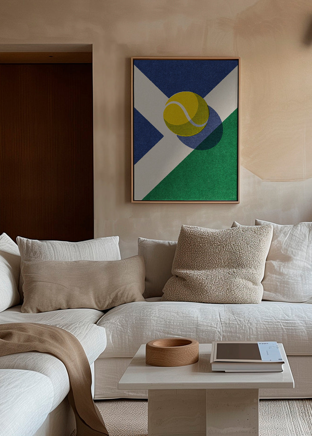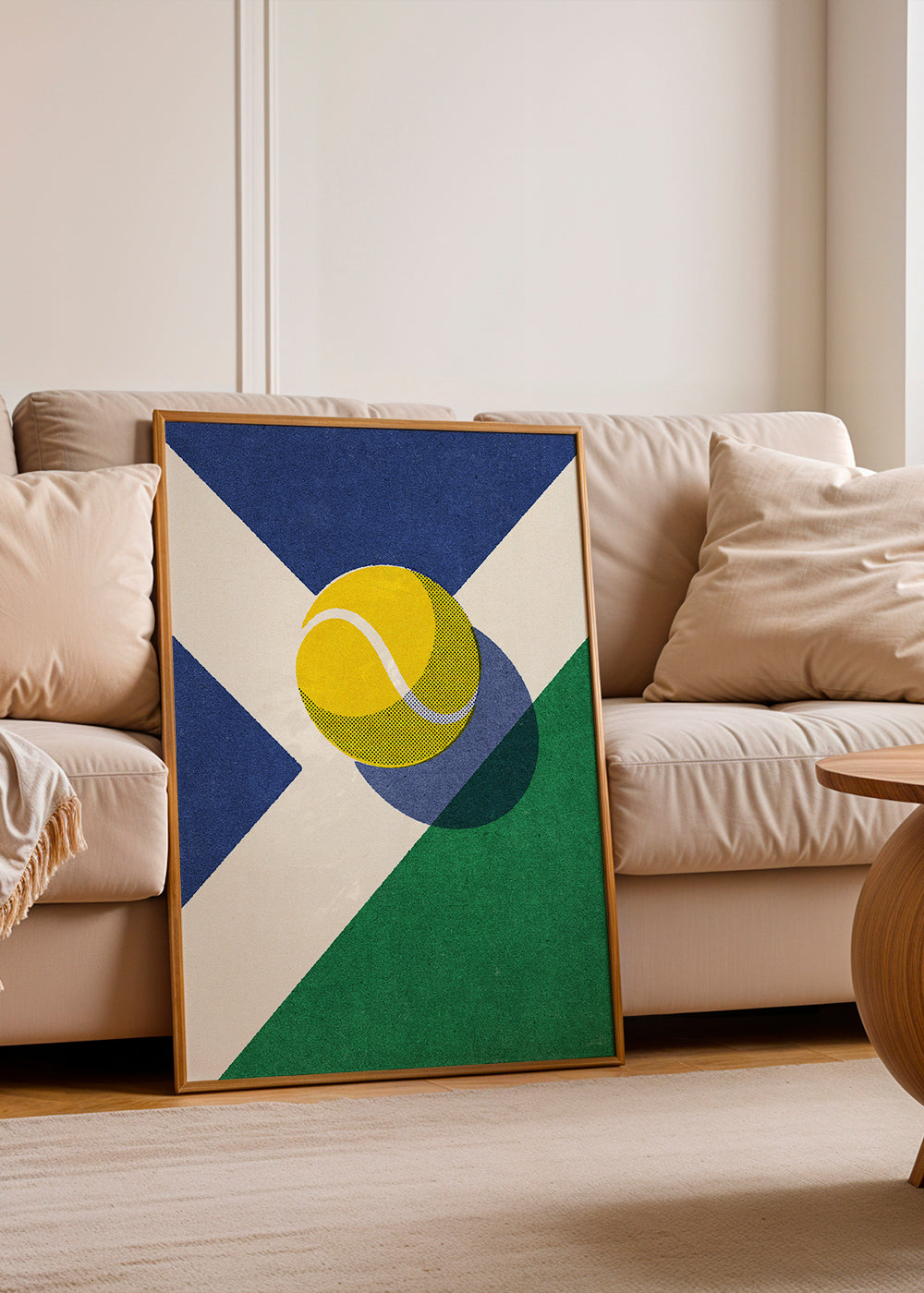 Bella opera della collezione quadri sul tennis, realizzata da Daniel Coulmann, sui toni blu, e da appendere in posizione verticale. Ti piace lo sport? Le nostre stampe e quadri di sport sono la scelta giusta per decorare quell'angolino spoglio. Pareti traboccanti di creatività.