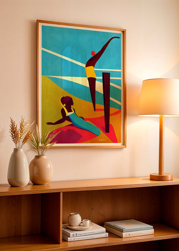 Una immagine ispirato alla collezione di quadri vintage e stampe retrò , creata da Bo Anderson, con sfumature dai toni blu, e con posizione verticale. Un'opera dallo stile retrò ideale per un home decor dai tocchi vintage. Pareti eleganti per abitazioni chic.