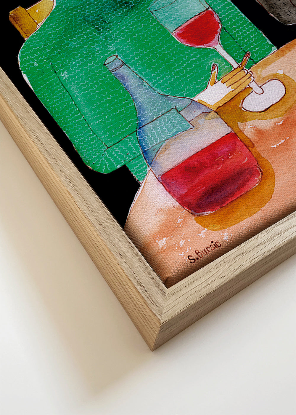 Per evitare rotture, le nostre cornici incorporano vetro acrilico al posto del vetro. Il vetro acrilico riproduce l'effetto del vetro, ma evita possibili danni durante il trasporto o il posizionamento della cornice.