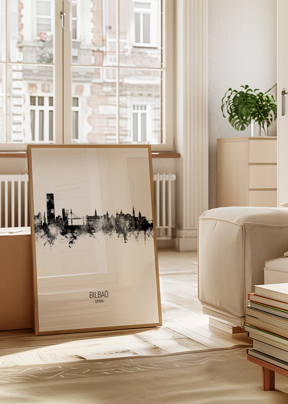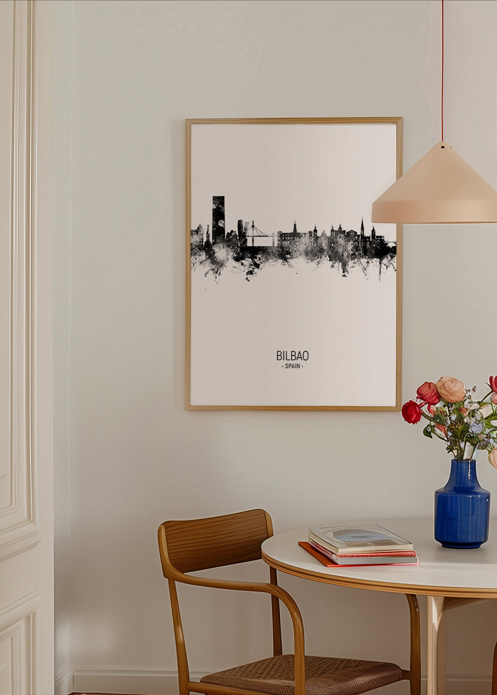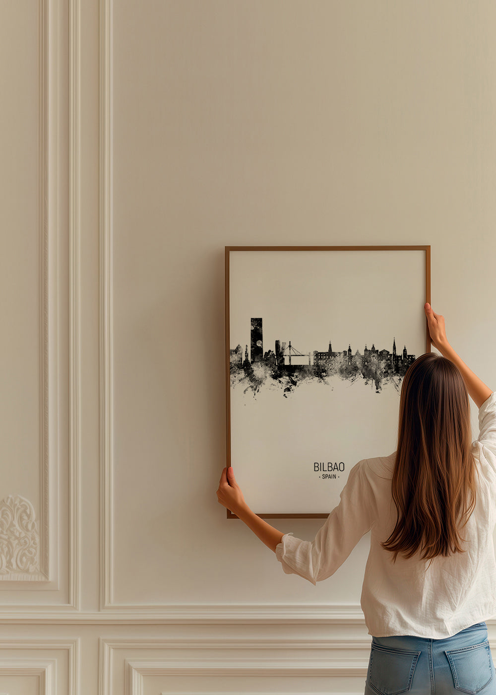 Quadro in stile nordico Bilbao Skyline blanco y negro