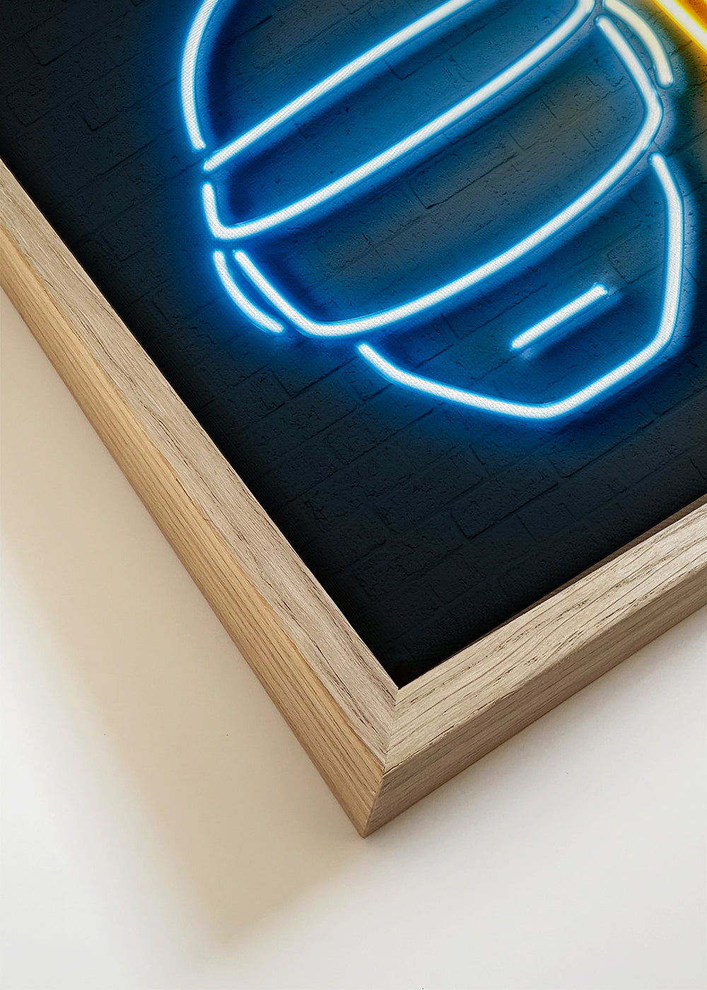 Per evitare rotture, le nostre cornici incorporano vetro acrilico al posto del vetro. Il vetro acrilico riproduce l'effetto del vetro, ma evita possibili danni durante il trasporto o il posizionamento della cornice.
