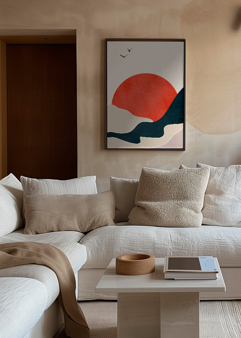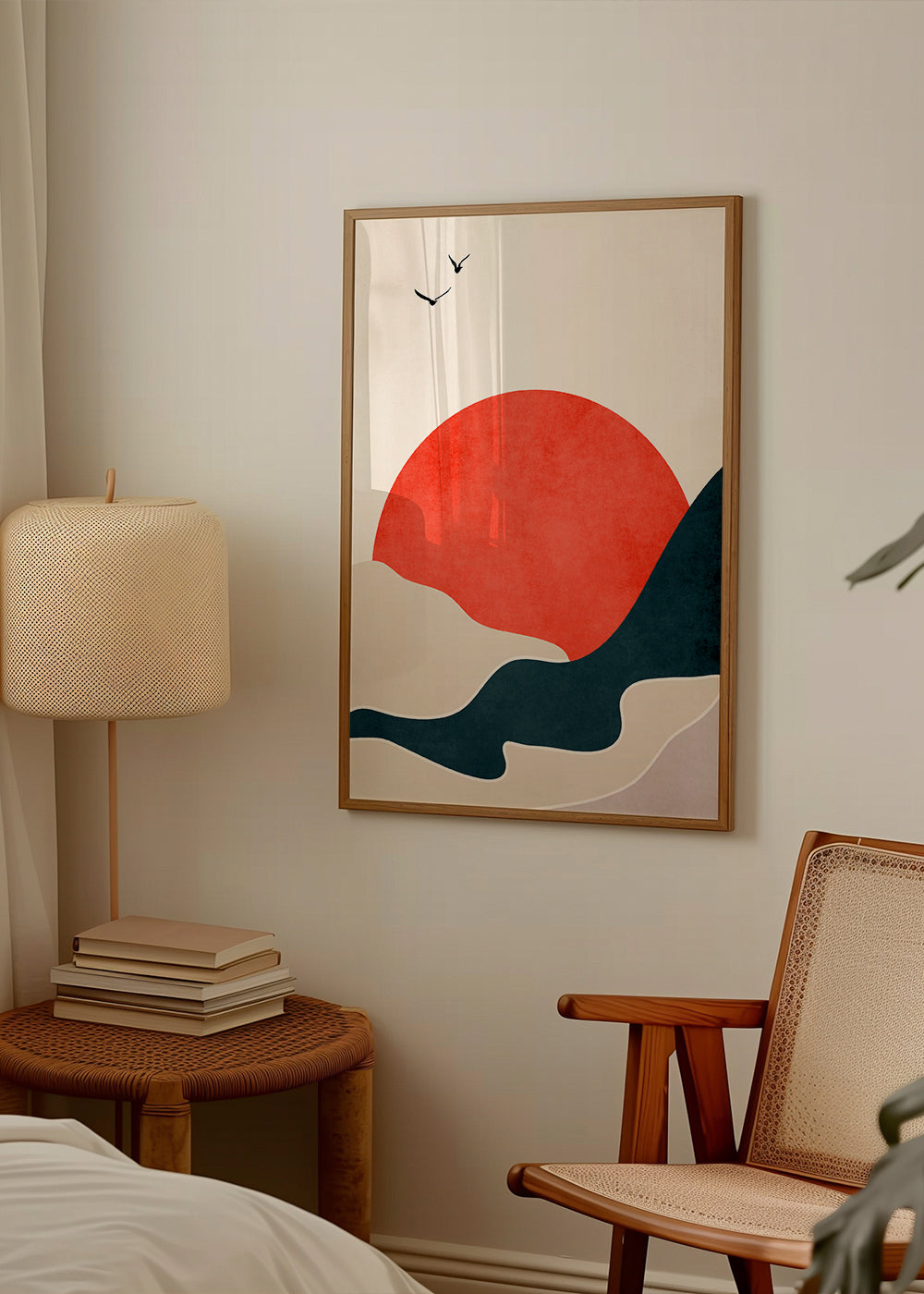 Una stampa ispirato alla collezione di quadri di paesaggi e natura, dell'artista Kubistika, con colori rossi, e nel formato verticale. I quadri di paesaggi sono spettacolari. Abbinali a scritte e frasi per creare composizioni e wall gallery davvero pazzesche. Costruisci il tuo angolo preferito.