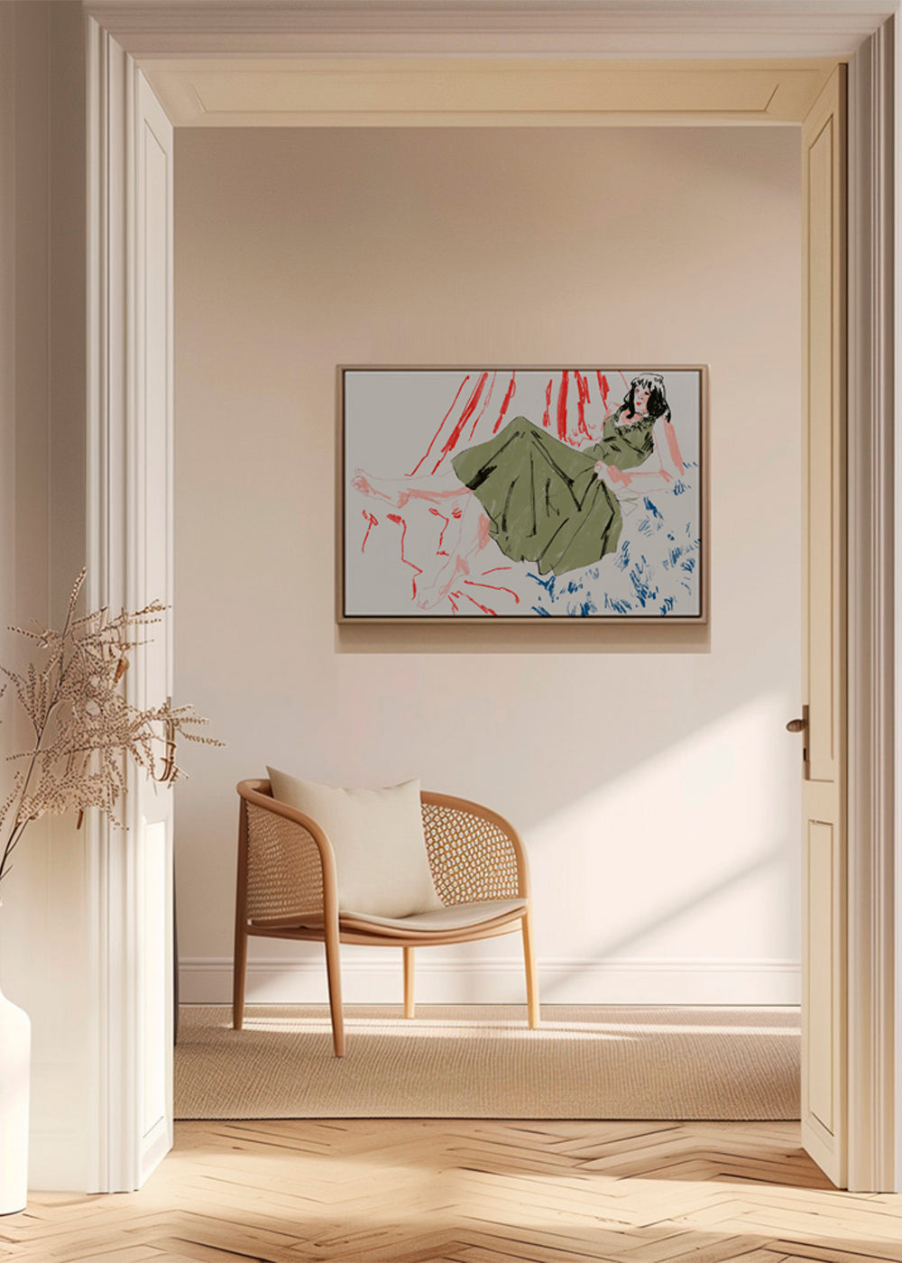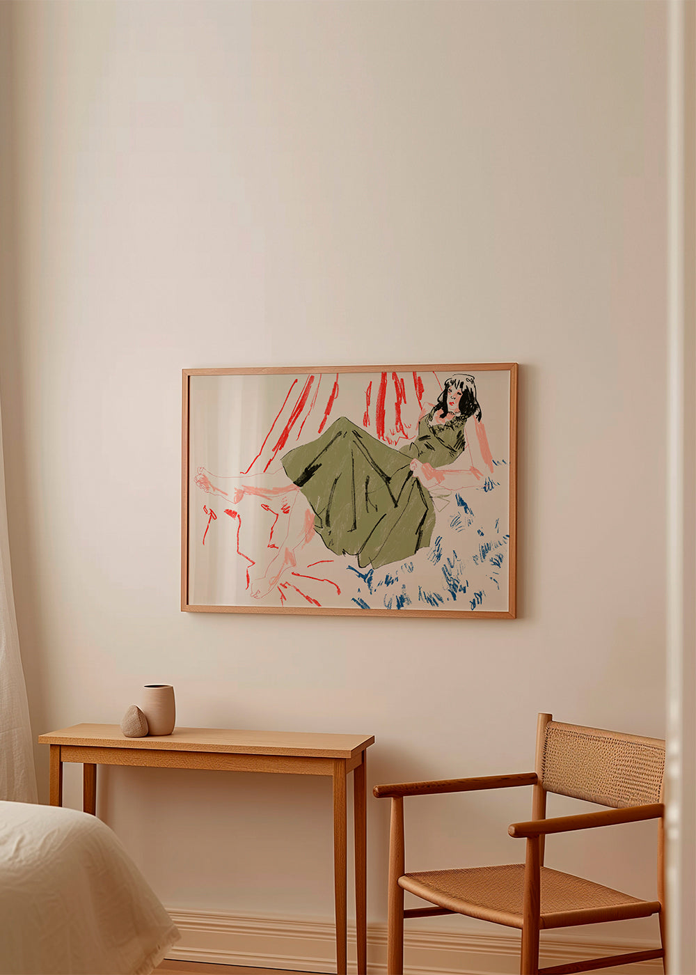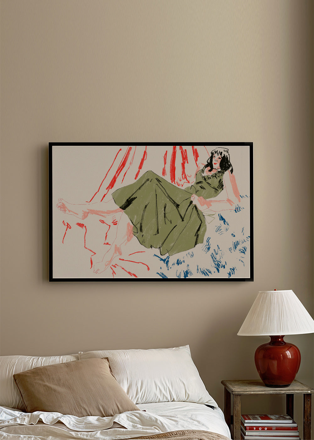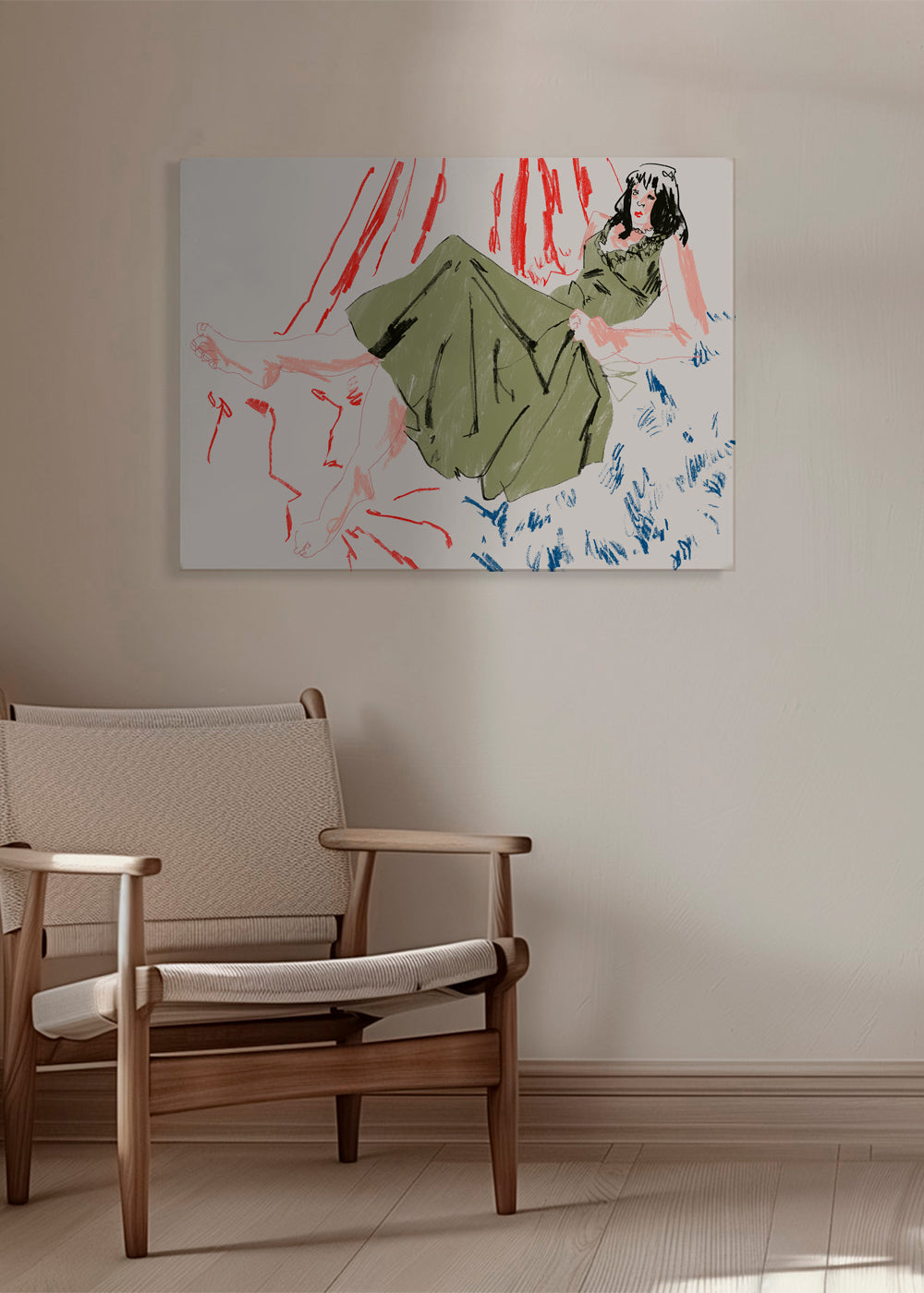 Bello design della nostra selezione di quadri di donne, della collezione dell'artista 1x, con sfumature dai toni verdi, e orientata in senso orizzontale. Si tratta di un'illustrazione semplice e pulita, che puoi abbinare ad altre illustrazioni per realizzare una composizione artistica. Rinnovare le pareti può dare uno stile del tutto nuovo al tuo home decor.