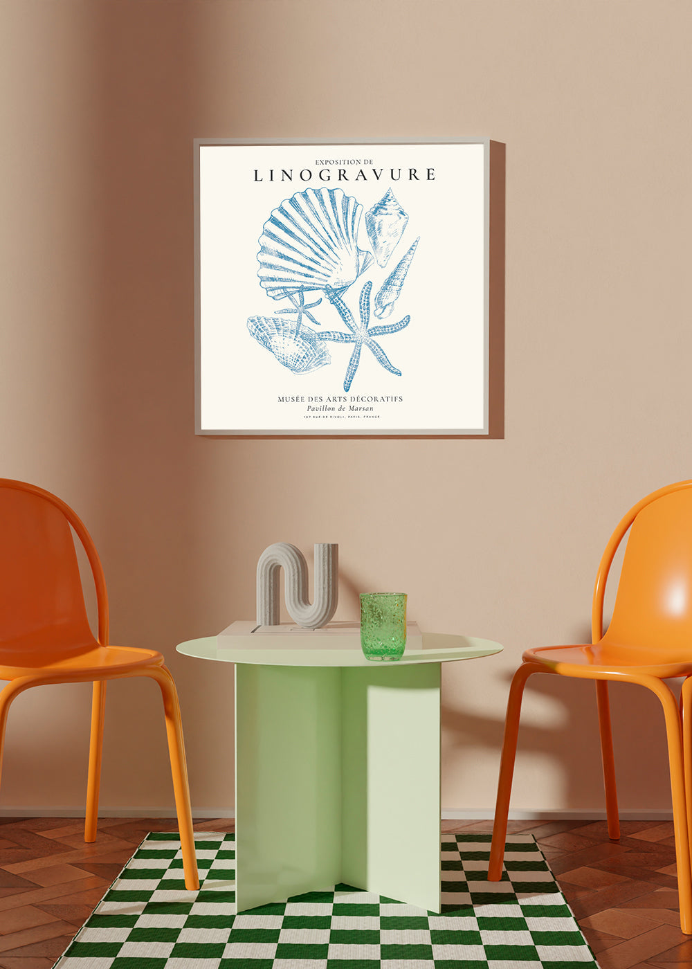 Quadro in stile nordico Exposition de linogravure, Sealife (la vie marine) - SQUARE
