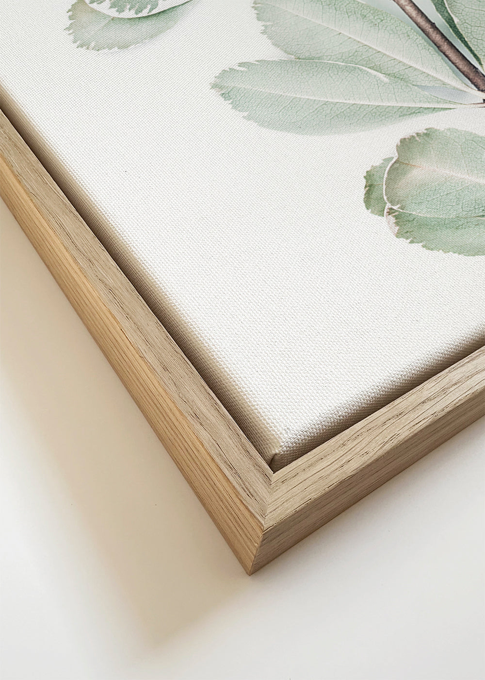 Le cornici in legno fino a 50x70 (compreso) hanno una larghezza di 1,5 cm e una profondità di 3 cm, mentre in quelle più grandi la larghezza è di 2 cm e una profondità di 3 cm.