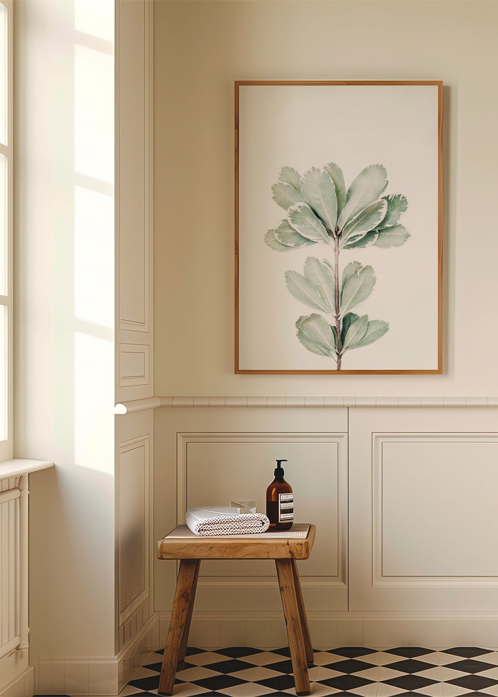 Una opera dal nostro set di quadri di fiori e piante, creata da Kathrin Pienaar, sui toni verdi, e con orientamento verticale. Crea un giardino verticale abbinando quest'opera ad altri quadri di fiori e piante. Crea una perfetta decorazione da parete.
