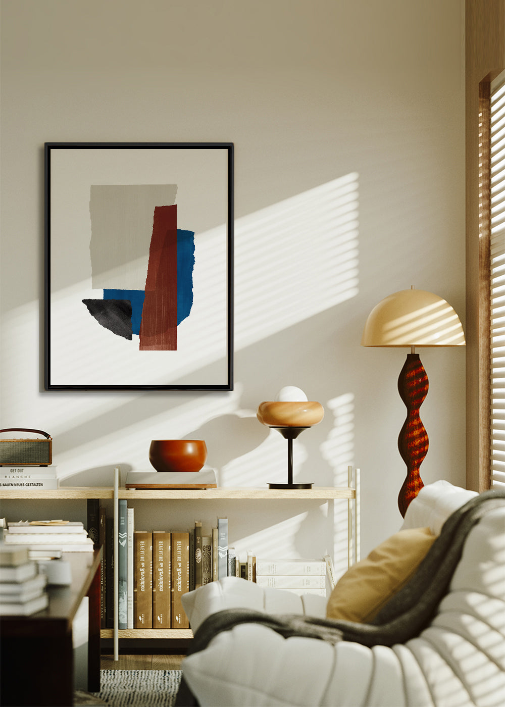 Bello poster della collezione quadri geometrici, realizzata da Nouveau Prints, con tonalità di colori rossi, e nel formato verticale. I quadri geometrici sono un'ottima opzione per decorare spazi moderni e all'avanguardia. Trasforma la tua casa in un luogo pieno di stile.
