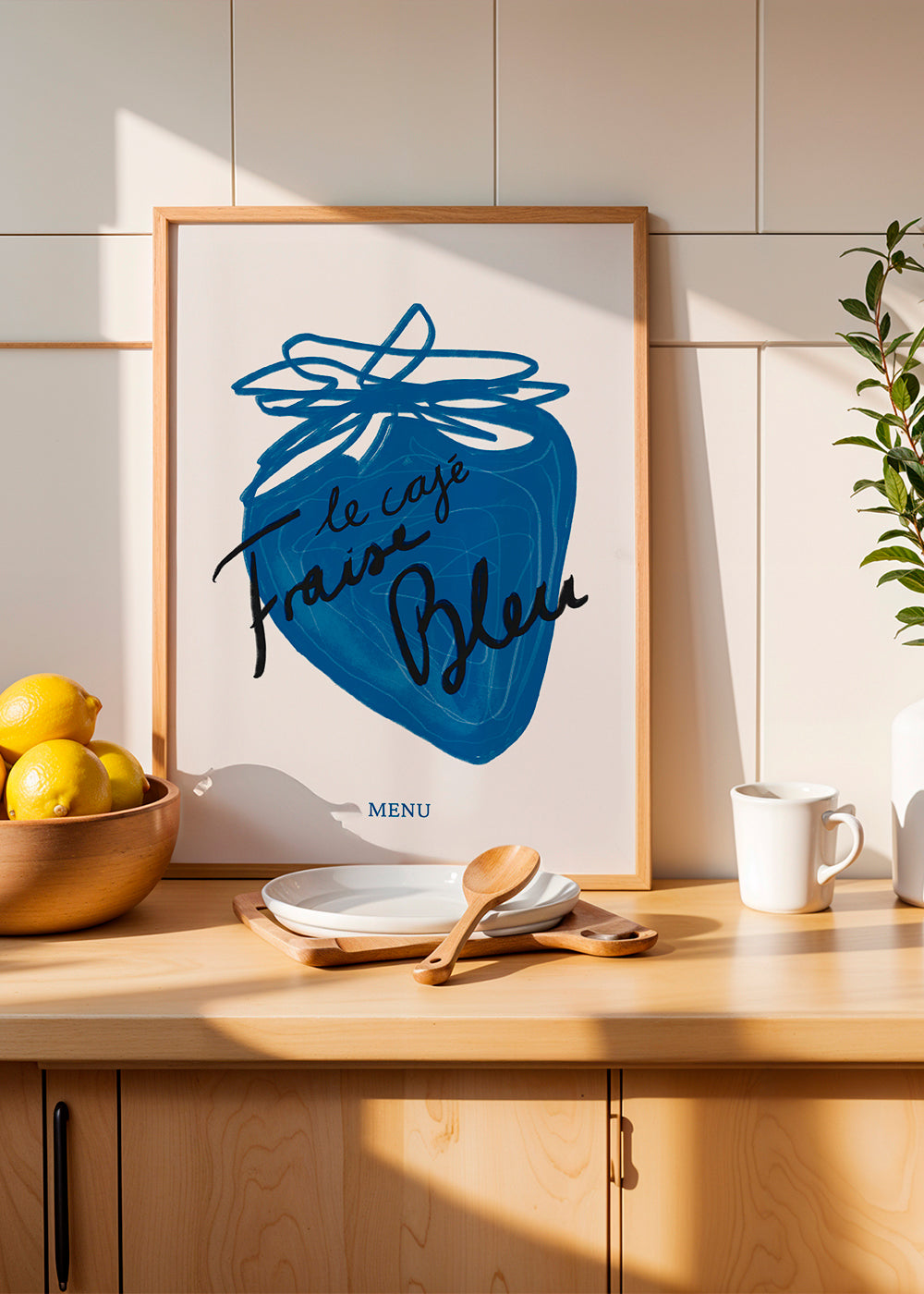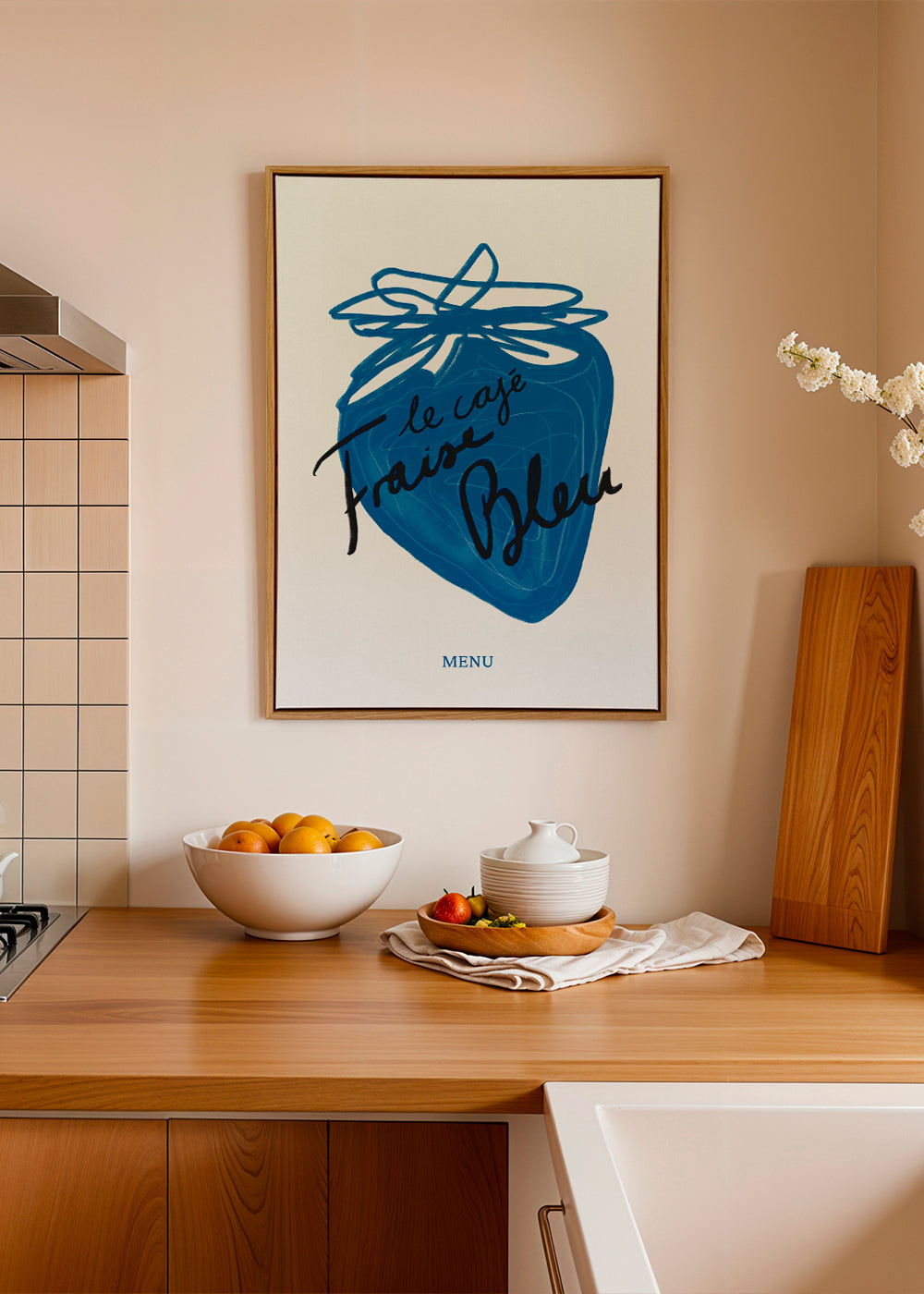 Una opera della nostra collezione di quadri con cibo e bevande, di 1x, dalle sfumature blu, e da appendere in posizione verticale. Questa stampa in stile nordico è perfetta per gli ambienti con un home decor scandinavo. Cambia l'aspetto di una stanza semplicemente aggiungendo dei quadri alle pareti.