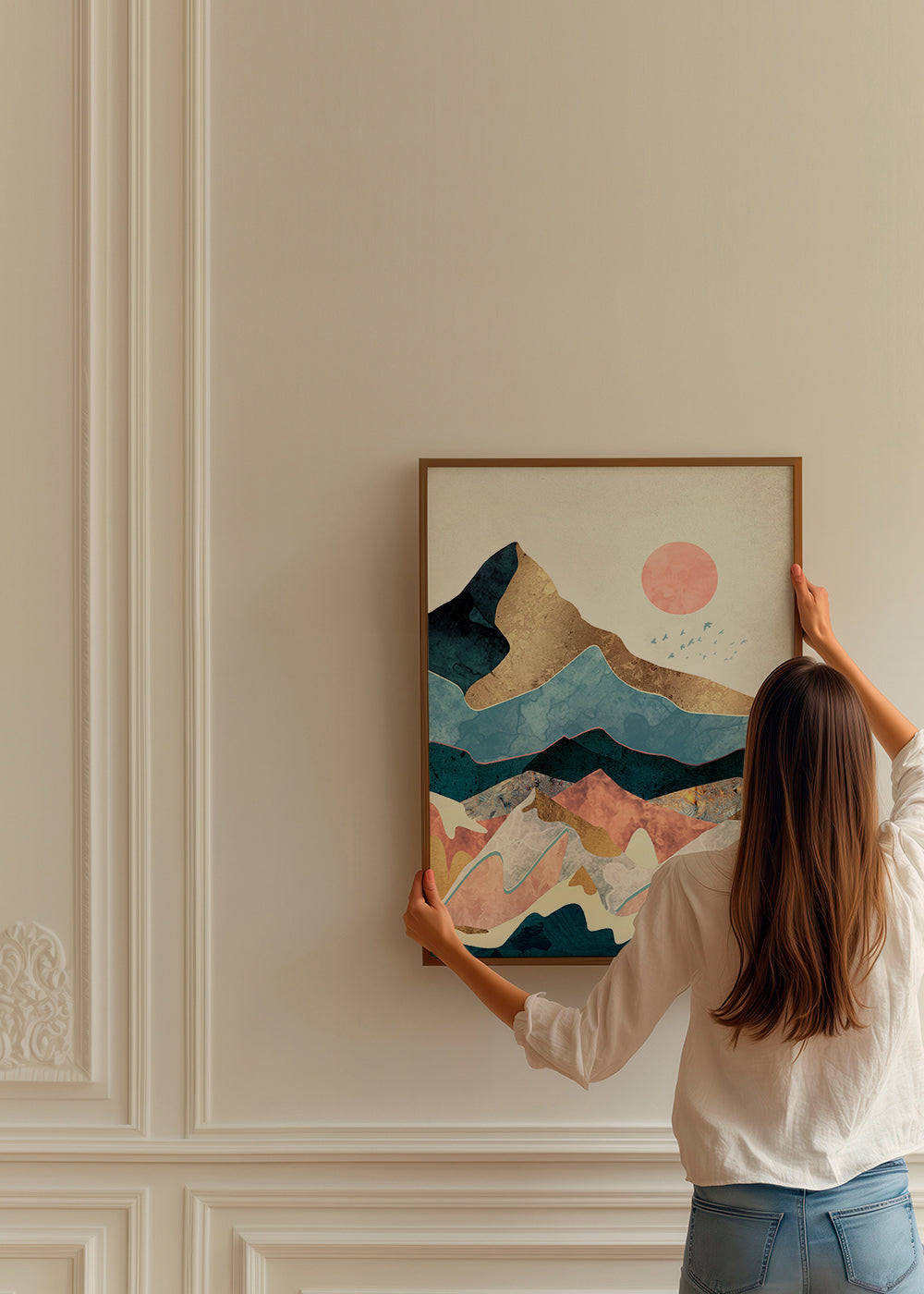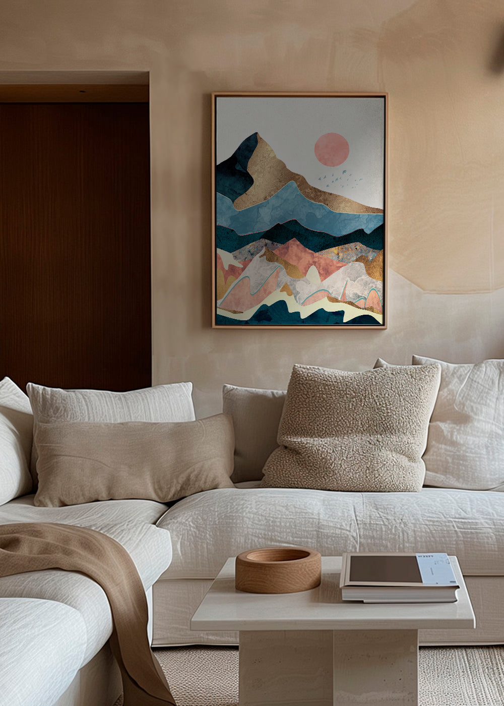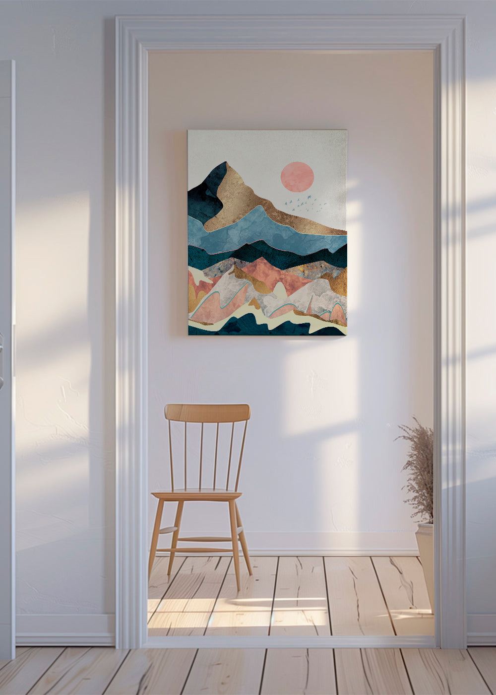 Questa pieza ispirato alla collezione di quadri di paesaggi montani, realizzata da SpaceFrog Designs, con toni blu, e da formato verticale. I quadri di paesaggi sono spettacolari. Abbinali a scritte e frasi per creare composizioni e wall gallery davvero pazzesche. Lasciati conquistare dall'arte.