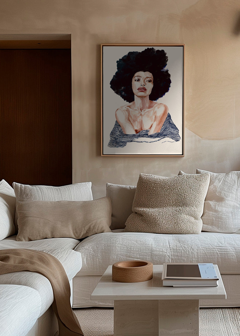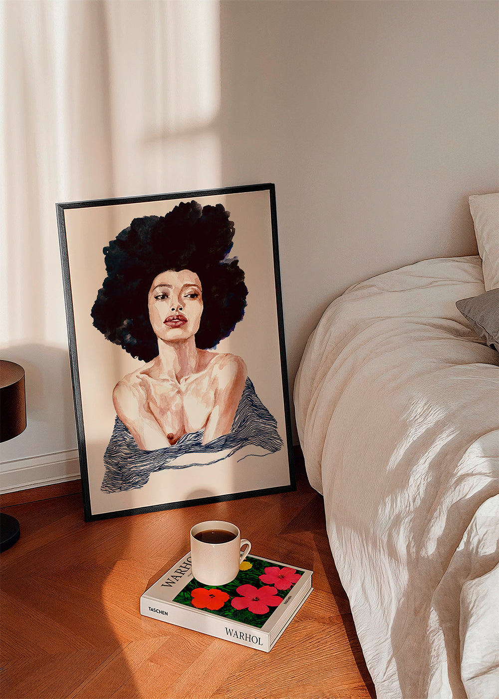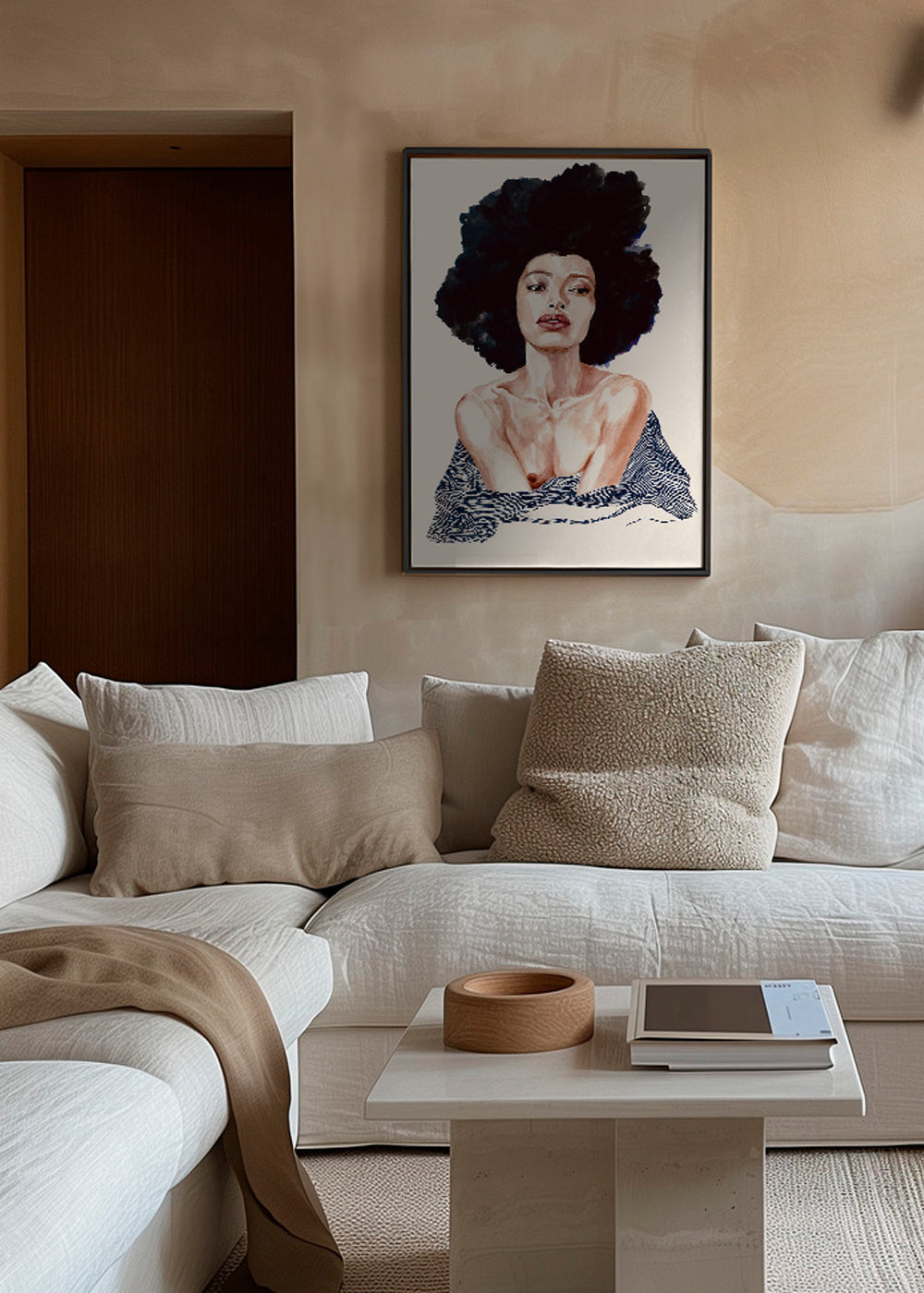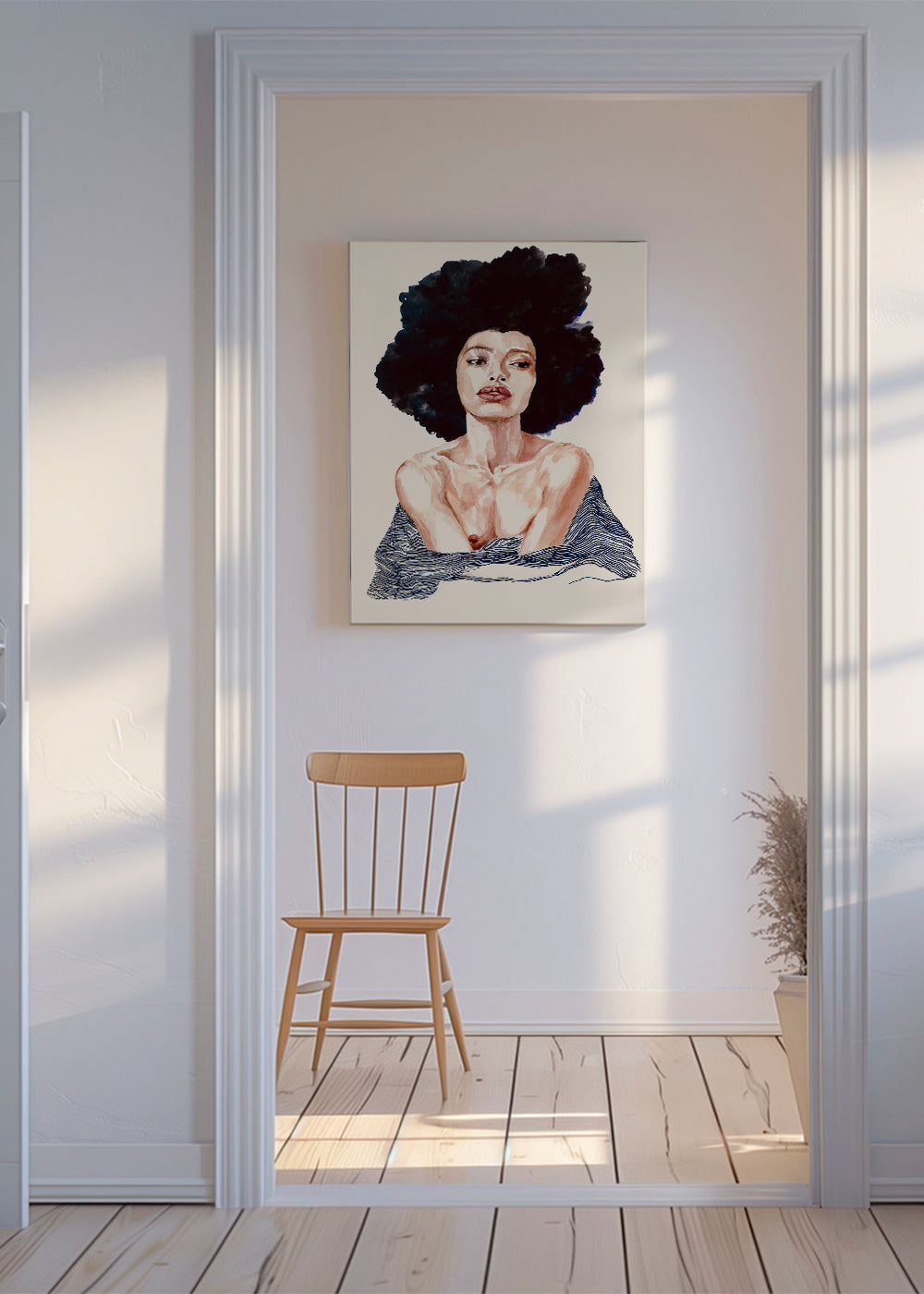 Un quadro dal nostro repertorio di quadri di donne, di Sophia Novosel, dalle sfumature nero, e da formato verticale. Le stampe con illustrazioni sono ideali per personalizzare le pareti in modo creativo. Eleganza ispirata all'arte.