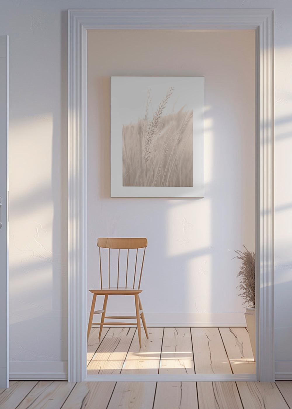 Una immagine appartenente alla categoria di quadri di fiori e piante, di 1x, con colori marroni, e da formato verticale. Rilassati e lascia che le tue pareti siano in armonia con questa calma. Quest'opera è ideale da abbinare ad altre stampe rilassanti. Pareti eleganti per abitazioni chic. Il margine bianco che incornicia l'immagine valorizza la forza espressiva dell'opera.