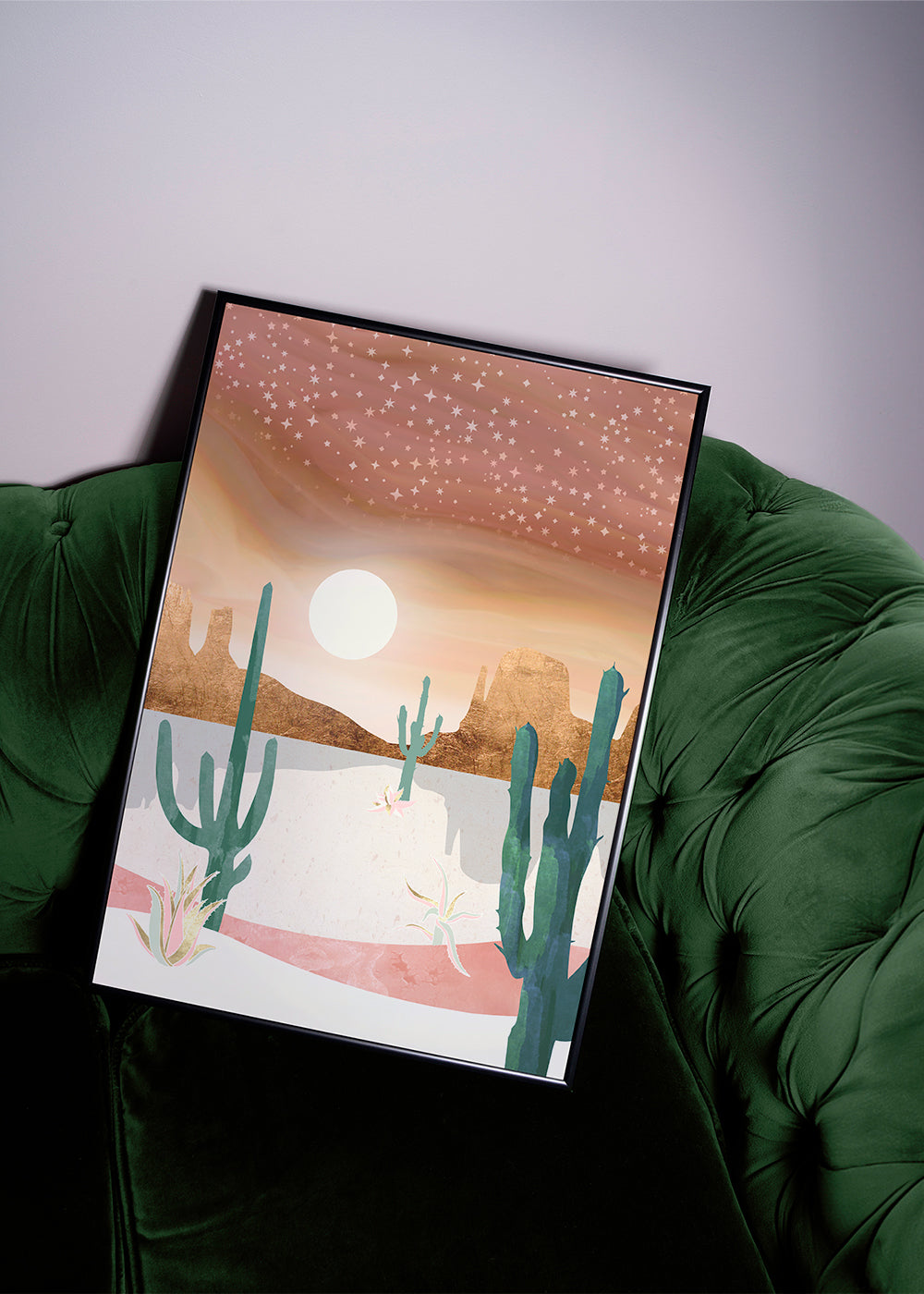 Bello quadro della nostra collezione di quadri con cactus, della collezione dell'artista SpaceFrog Designs, con pigmenti verdi, e ideale da mettere in posizione verticale. Con la natura nel suo massimo splendore, i quadri di paesaggi trasmettono grande serenità. Eleganza ispirata all'arte.
