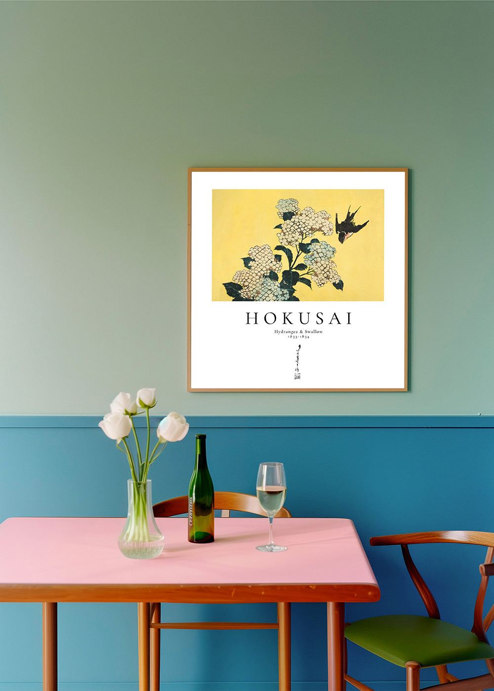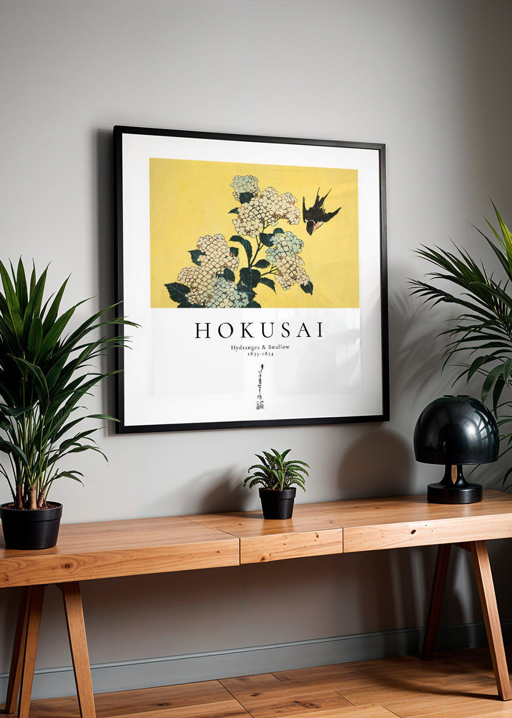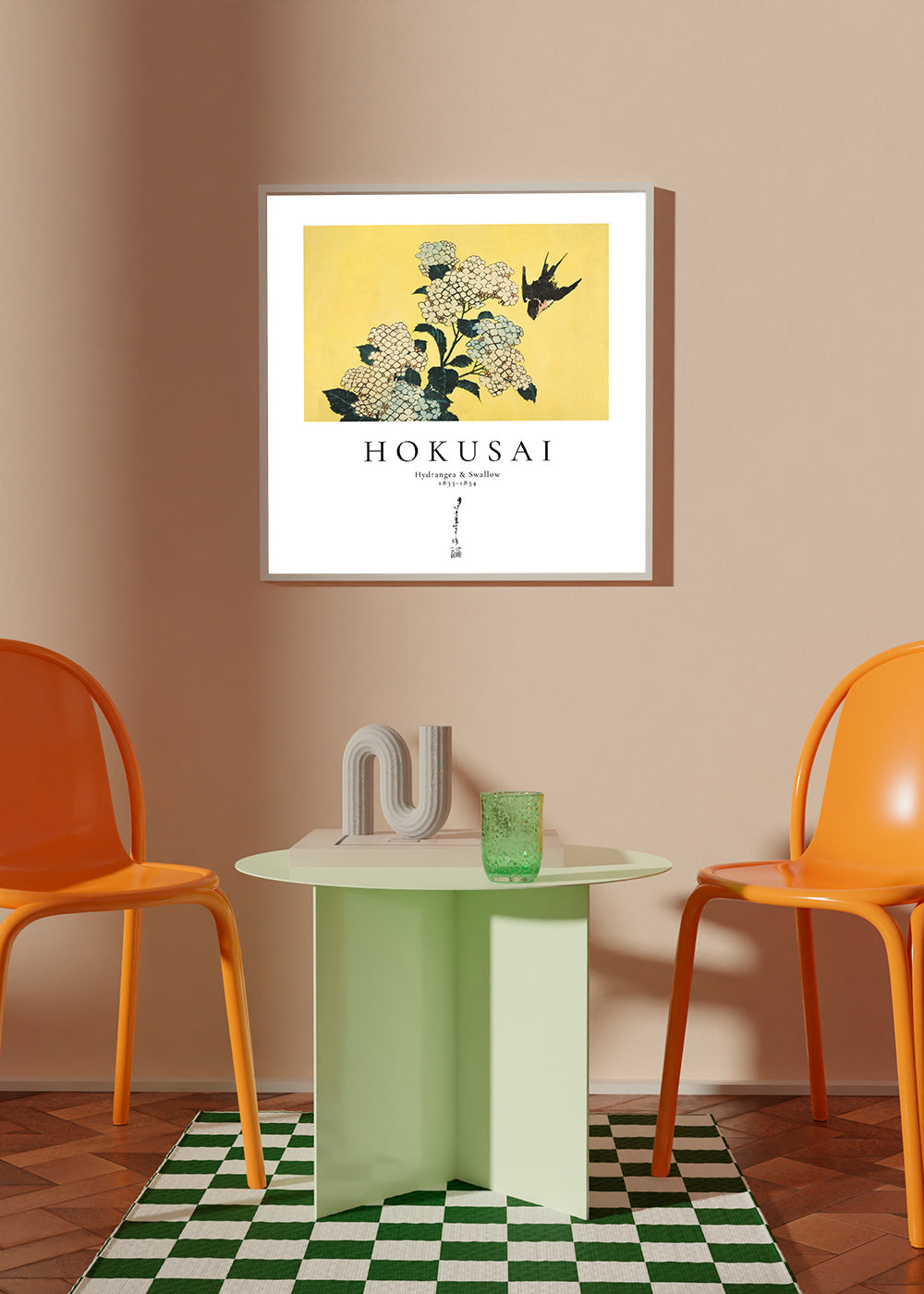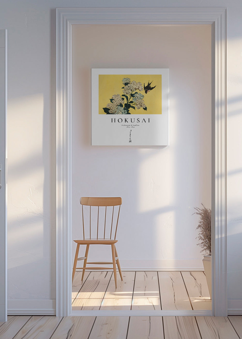 Quadro in stile nordico Hydrangea and Swallow by Katsushika Hokusai - Square