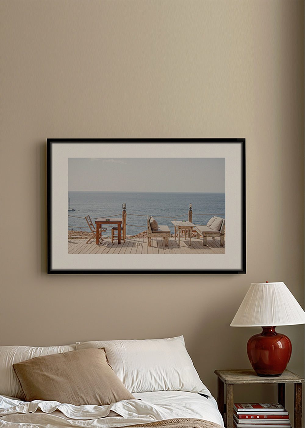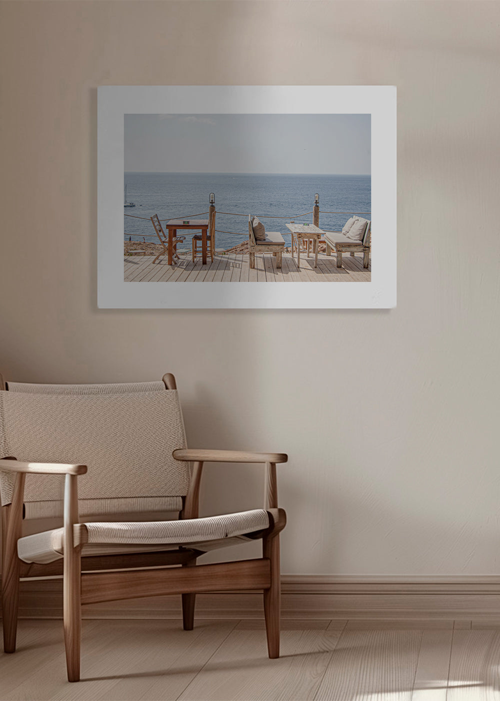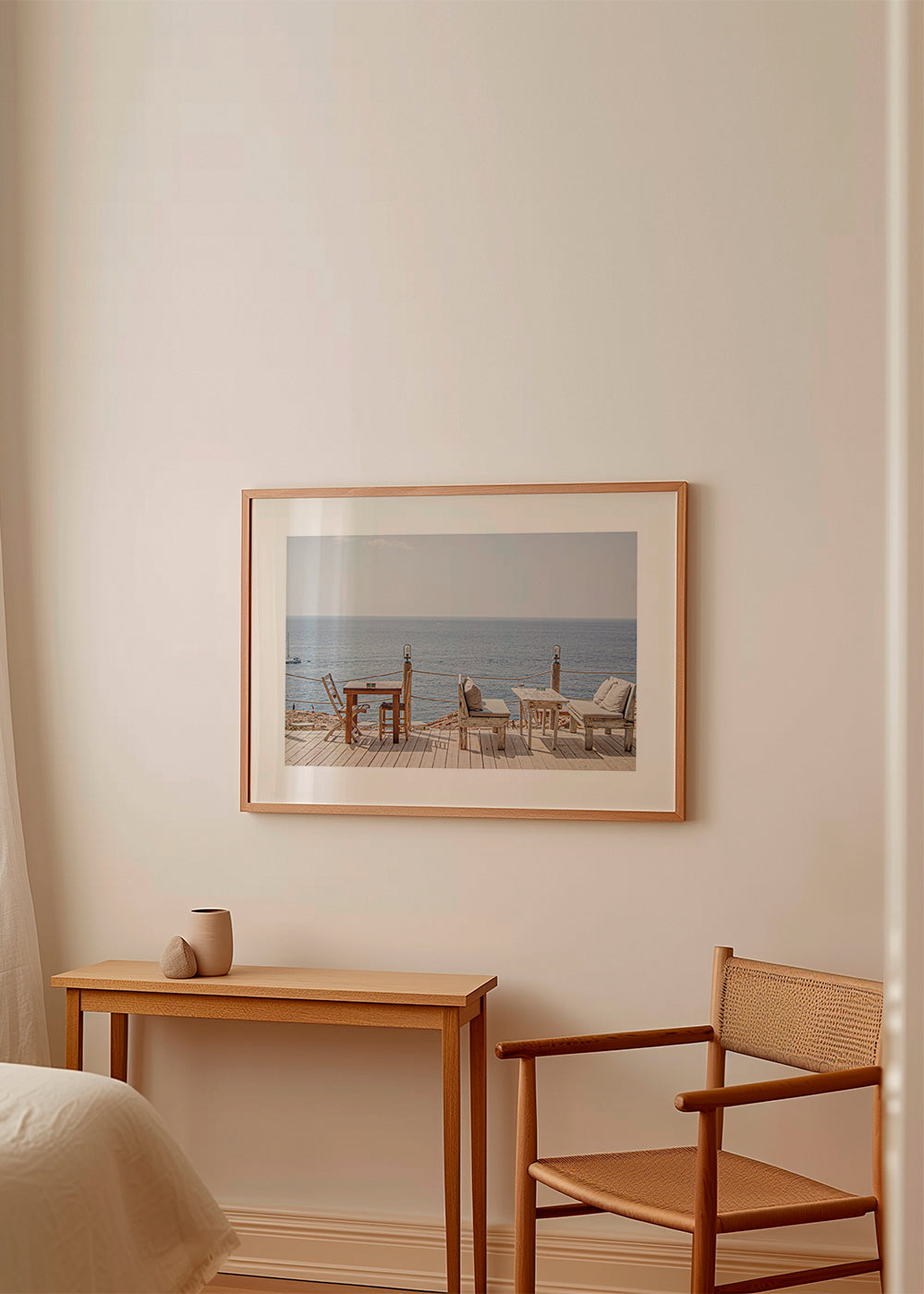 Questo poster dal nostro repertorio di quadri di spiagge e coste, di Ferran Feixas, sui toni blu, e da mettere in posizione orizzontale. Questa fotografia dà un tocco di stile all'interior design della tua abitazione. Puoi combinarla con altre foto ideali da incorniciare e creare una composizione di foto artistiche. Lascia che l'arte riempia la tua casa.