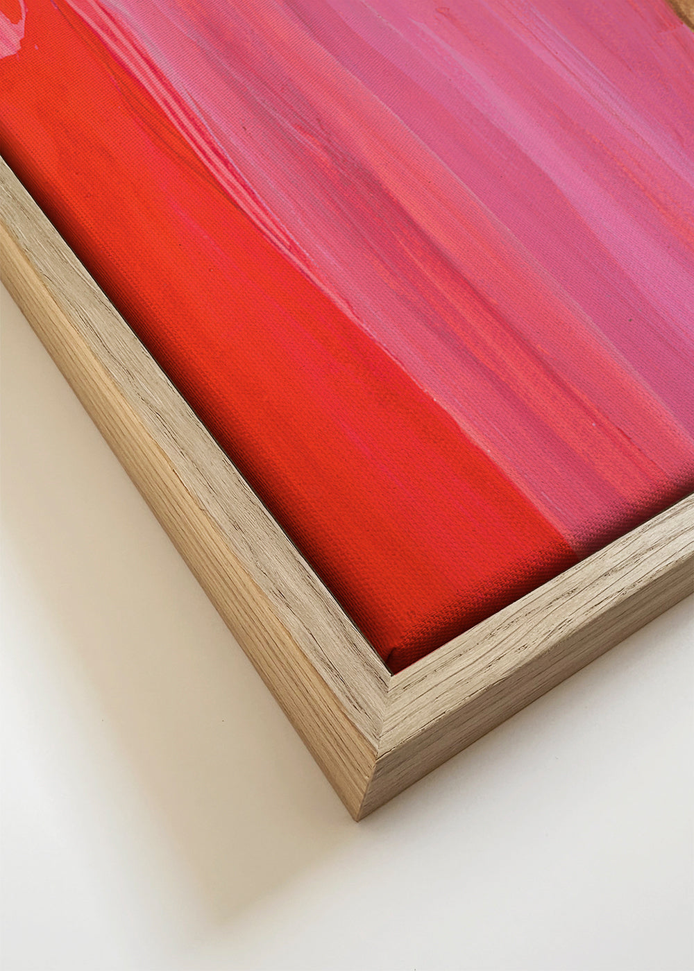 Per evitare rotture, le nostre cornici incorporano vetro acrilico al posto del vetro. Il vetro acrilico riproduce l'effetto del vetro, ma evita possibili danni durante il trasporto o il posizionamento della cornice.